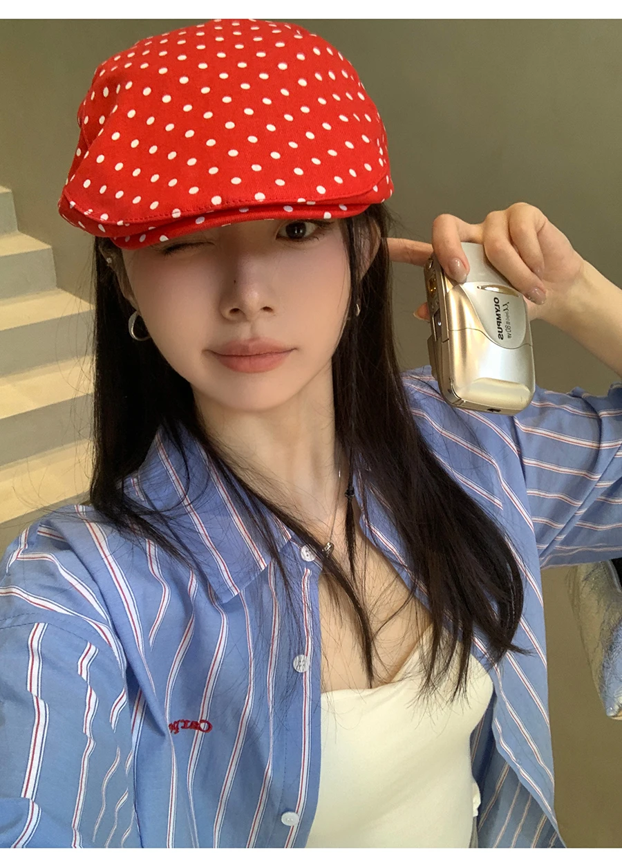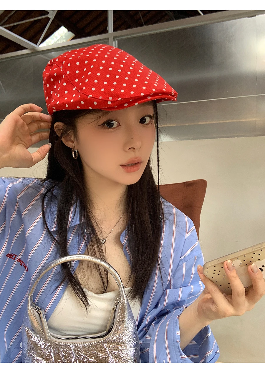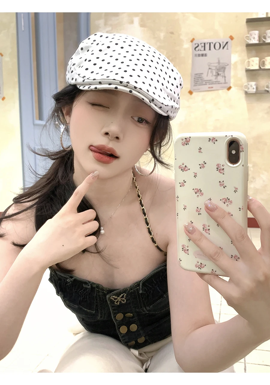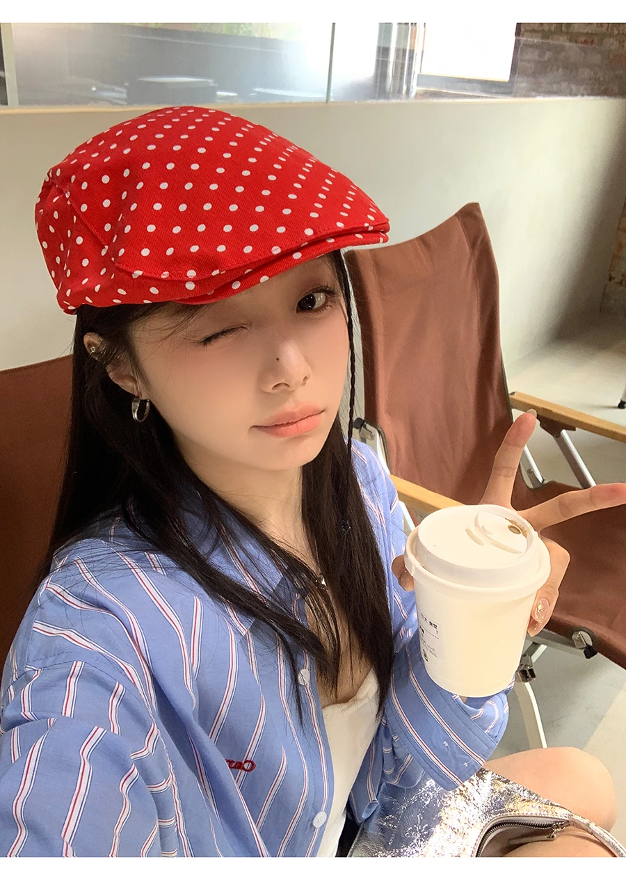 Ins New Retro Polka Dot Print Cappelli in avanti per le donne Primavera ed estate Gita Dolce Versatile Moda Y2K Berretti Cap Cofano
