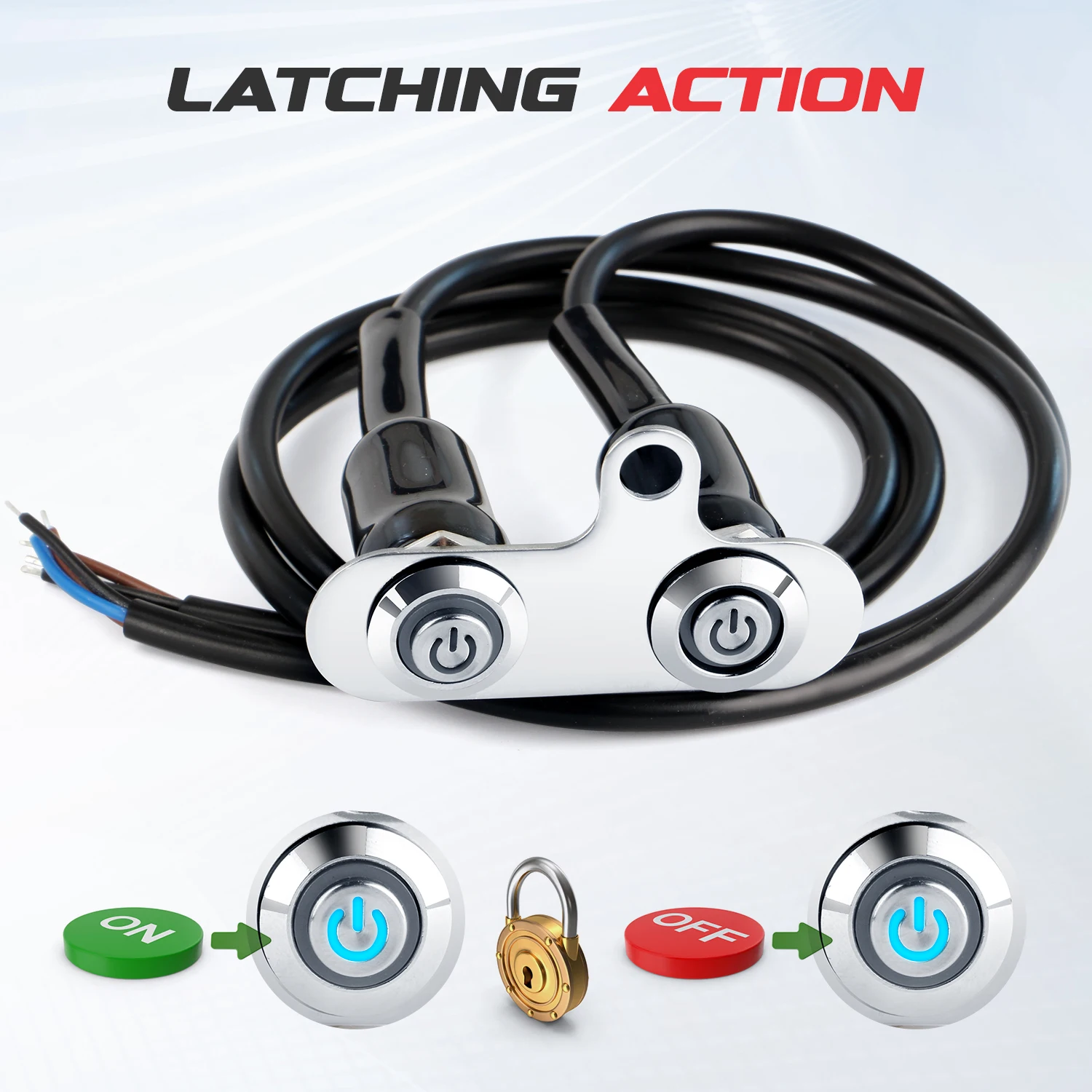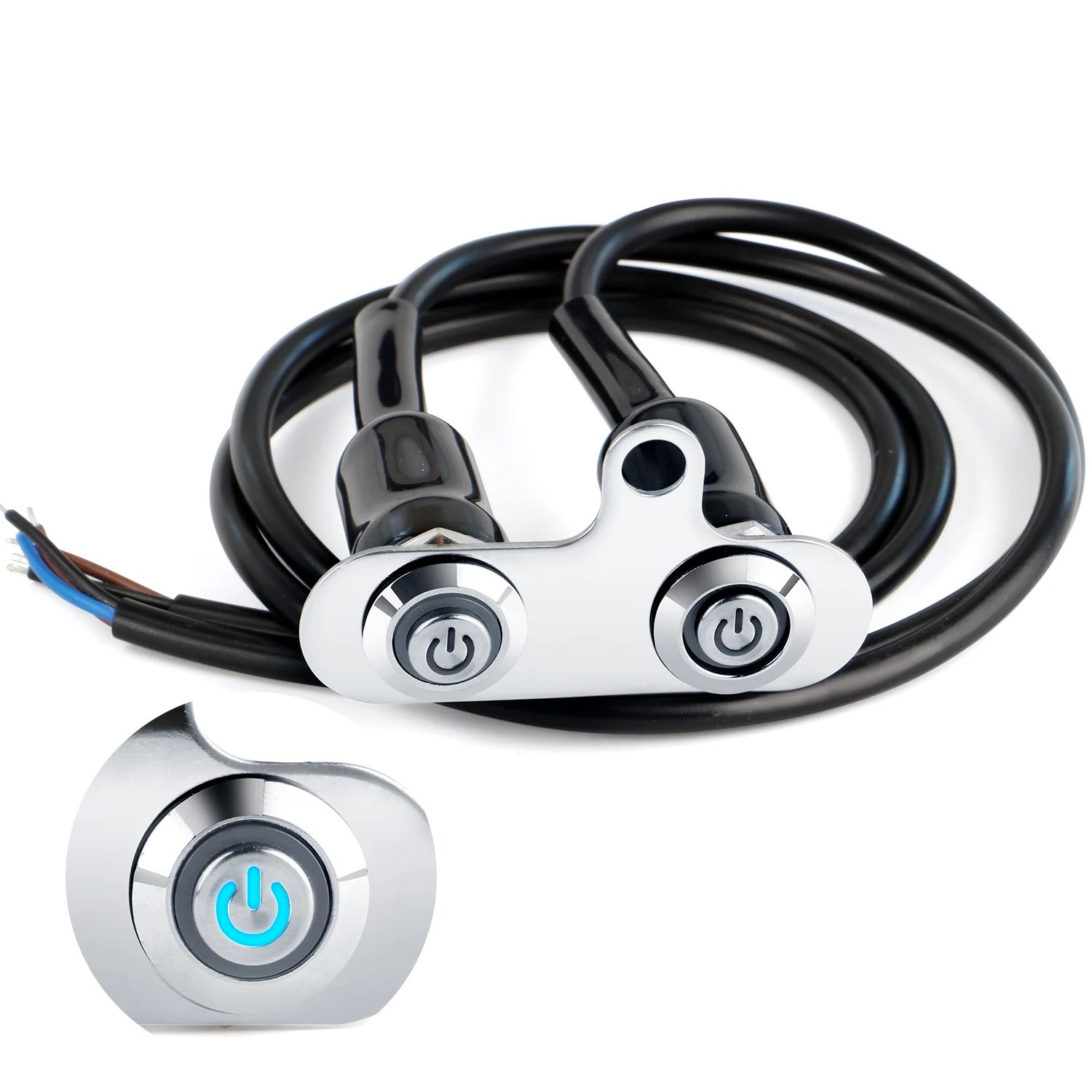 Interruttori manubrio moto LED blu – Acciaio inossidabile 12V con pulsante di controllo fendinebbia, adatti per bici da turismo da strada