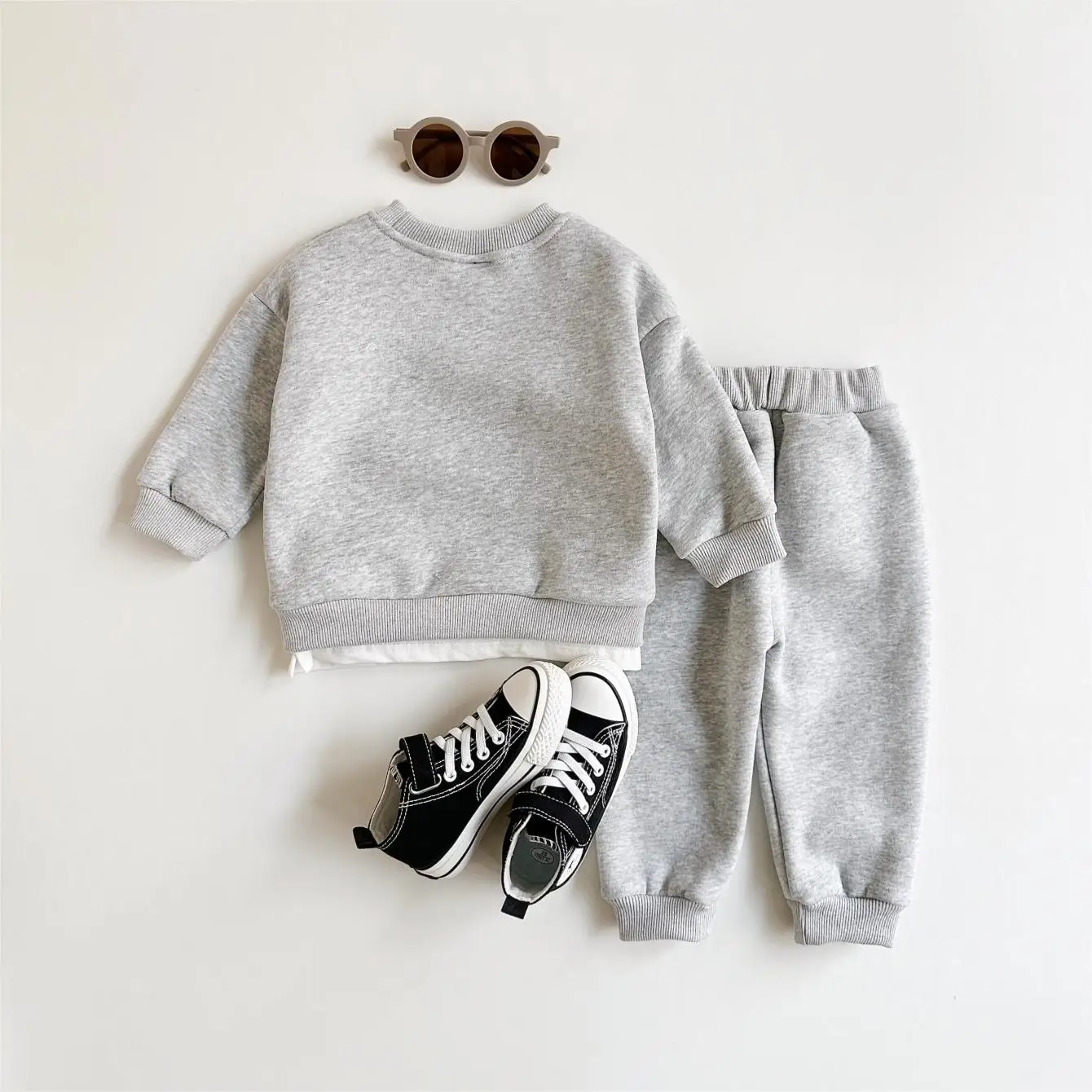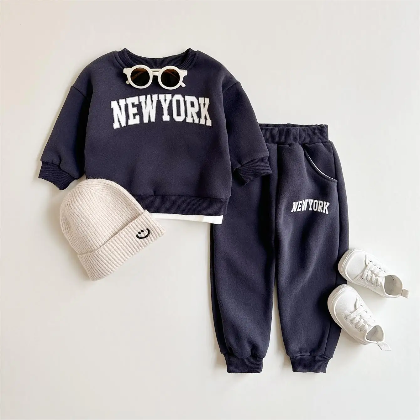 Inverno addensato neonato ragazzo ragazza 2 pezzi peluche lettera stampa abiti casual abiti set abbigliamento per bambini