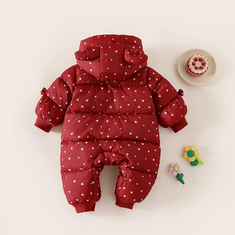 Inverno Bambini Ragazze Pagliaccetti Dot Stampato Tute con cappuccio per 0-3Y Neonate Parka imbottito in cotone Tute intere per neonate infantili