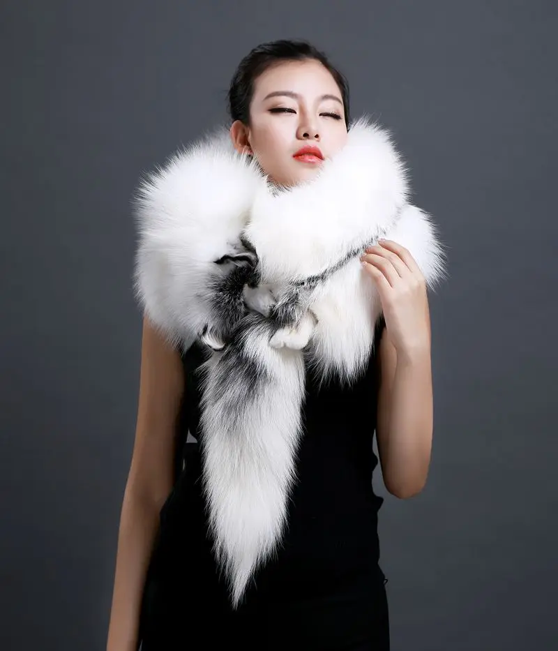 Fur material:100% real natural fox furScarf length:about 120cmМатериал меха: 100% натуральный мех лисыДлина шарфа: около 120 см