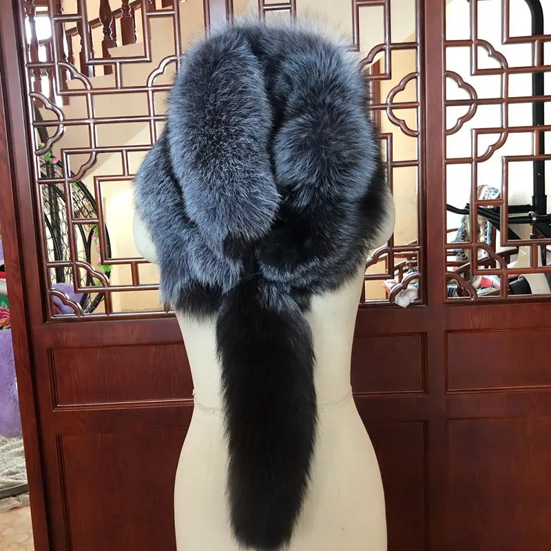 Inverno Caldo Grande Vera Pelliccia di Volpe Collo Cappotto di Pelliccia Naturale Sciarpe di Lusso Delle Donne Degli Uomini Giubbotti Cappuccio Scialle Decor Collo Femminile Sciarpa Avvolge