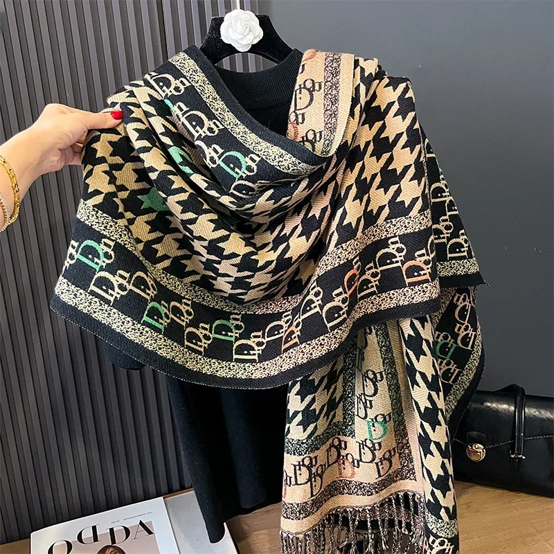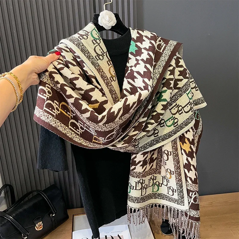 Inverno Caldo Poncho Cashmere Inverno Sciarpe Delle Donne Plaid Stampa Scialle Avvolge Femminile di Spessore Coperta di Pashmina Bufanda Viaggio Echarpe