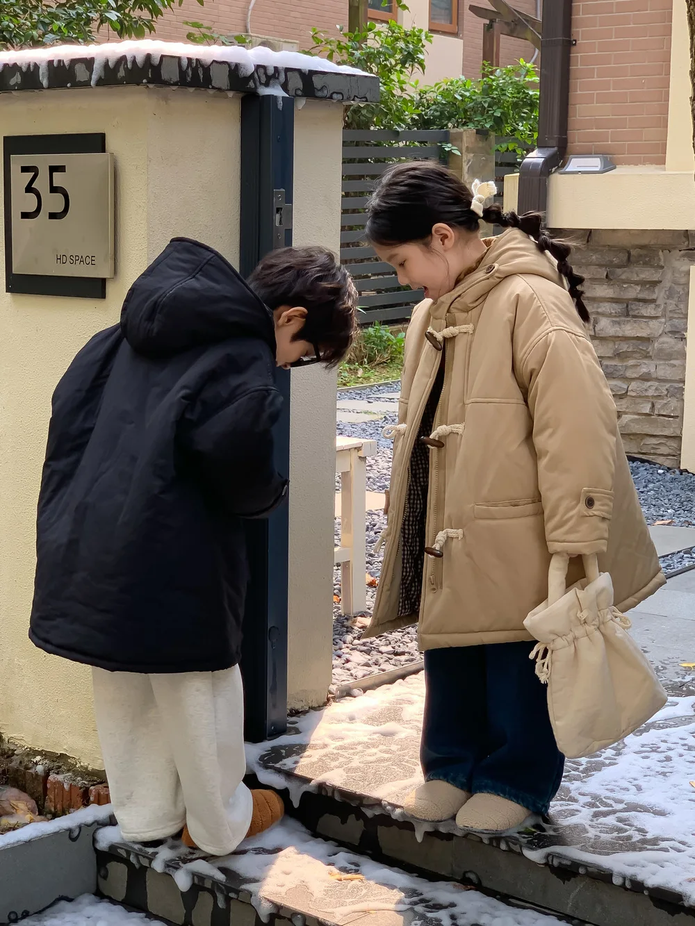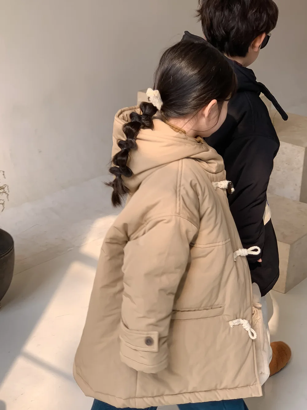 Inverno coreano bambini ragazzo parka cotone imbottito addensare con cappuccio bambino ragazzo cappotto da neve casual bottone in corno solido giacca da ragazzo per bambini