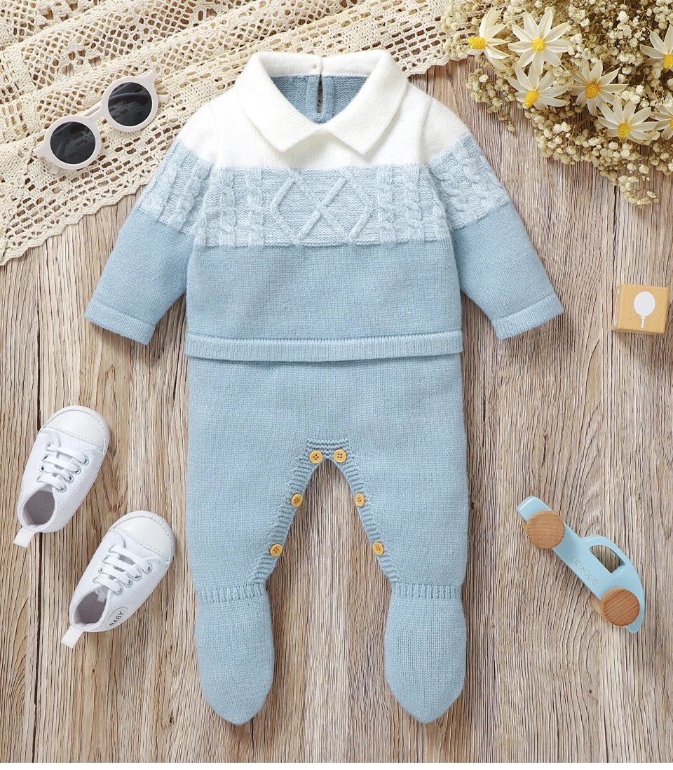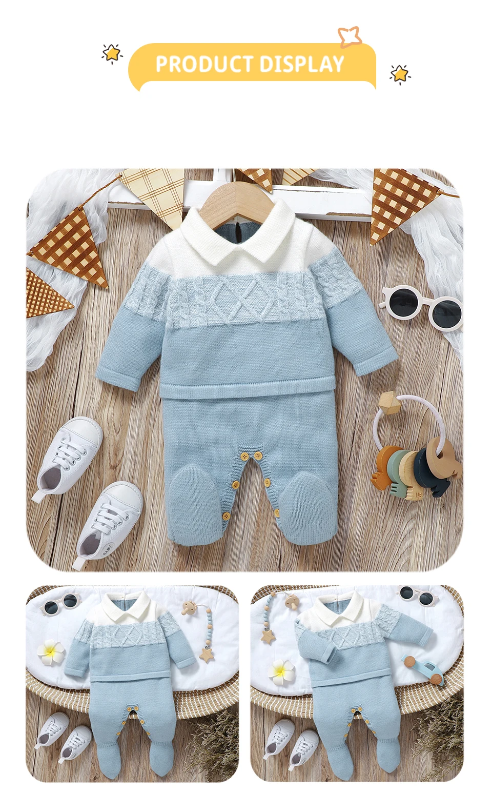 Inverno Neonati maschi Pagliaccetti Tute 0-18m Primavera Autunno Inverno Collo alto Manica intera Maglia Neonato Capispalla Tute Vestiti