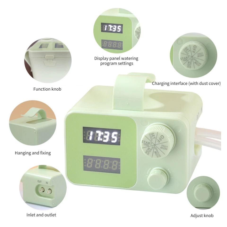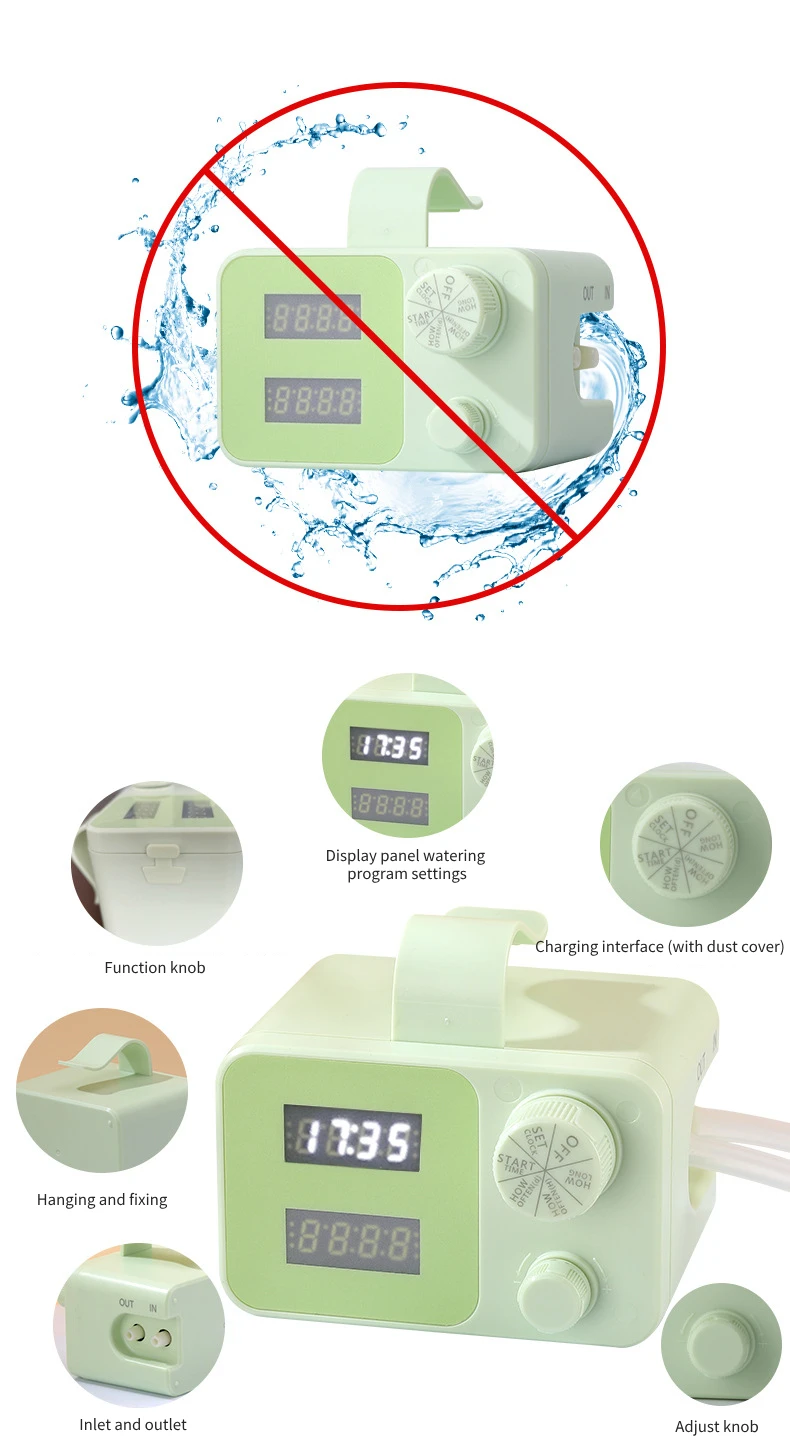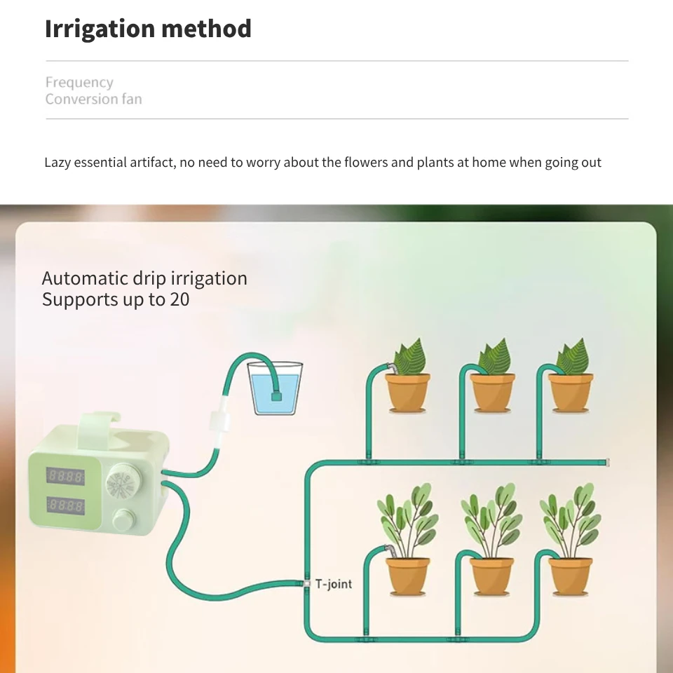 Questo prodotto è un prodotto a controllo automatico utilizzato per l’irrigazione e l’irrigazione a goccia di piante in casa, su balconi e altre aree.