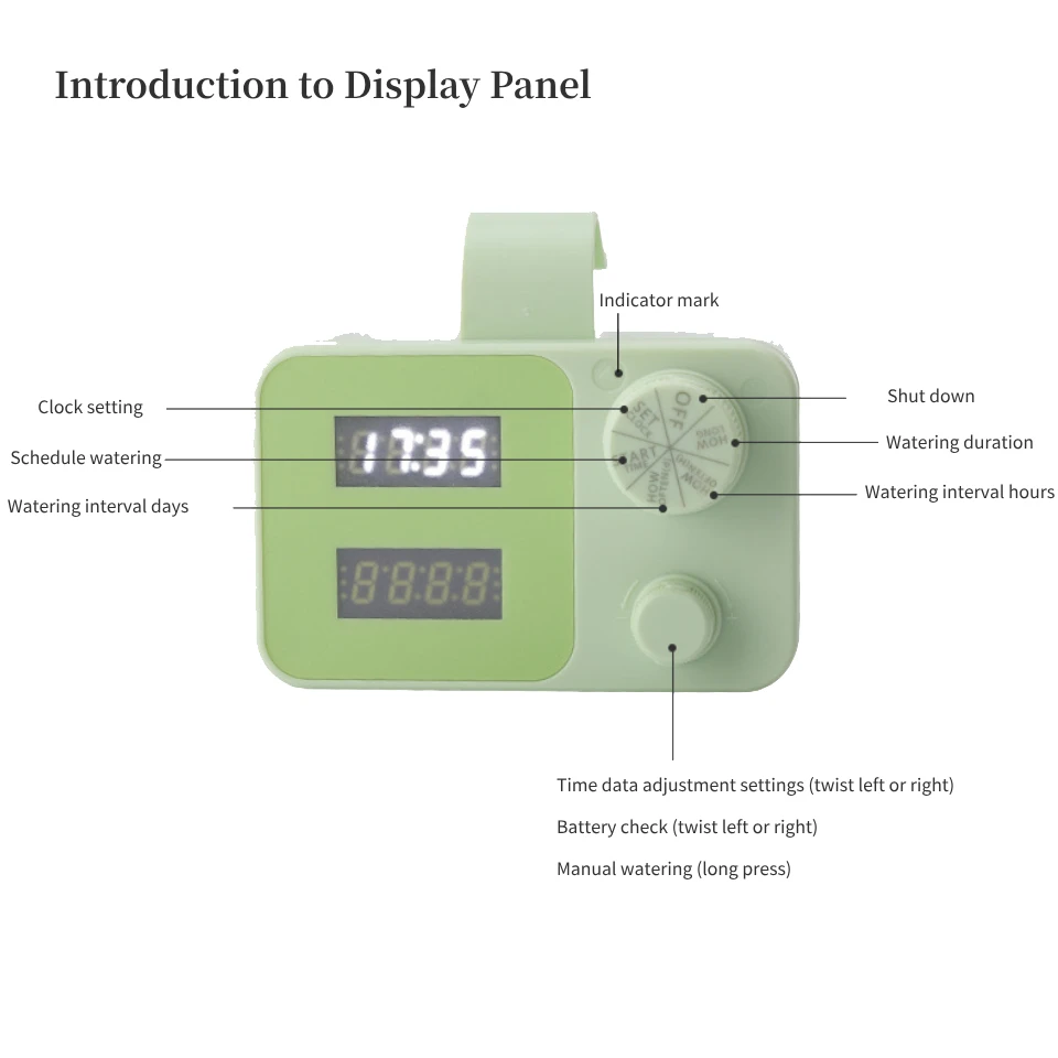 2.Intervalli di irrigazione da 1 ora a 30 giorni possono essere impostati, con una durata di 1-300 secondi.