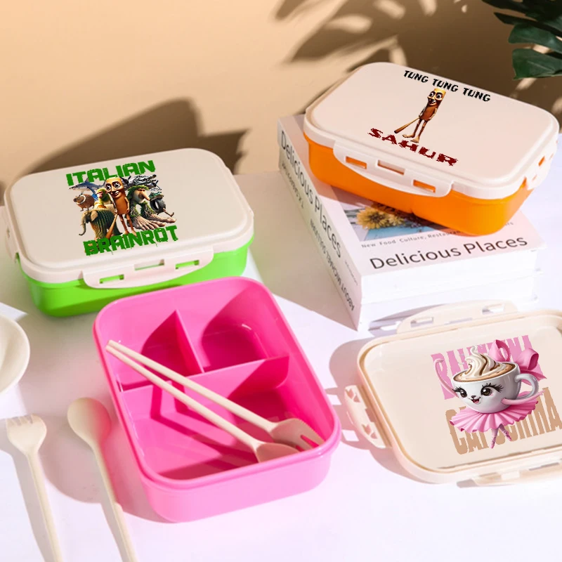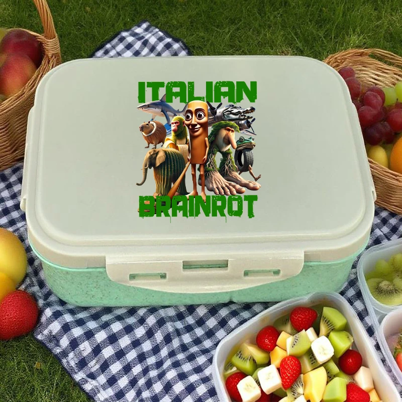 Italiano Brainrot Ragazzo Ragazza Lunch Box Anime Bento Box portatile Studente ermetico Contenitore per alimenti Capacità a strato singolo Regalo per bambini 2025