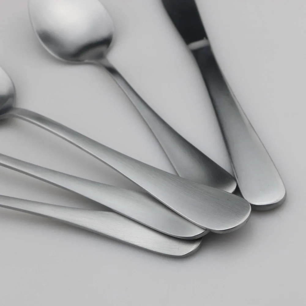 4. Lunghezza e peso del set di posate: coltello (232mm + 80g)/cucchiaio (203mm + 40g)/forchetta (203mm + 40g)/Cucchiaino (133mm + 20g)/Forchetta da Dessert (190mm + 35g)