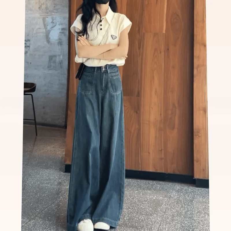 Jeans a gamba larga a vita alta da donna Pantaloni larghi e fluidi a gamba dritta lunghi fino al pavimento Vintage