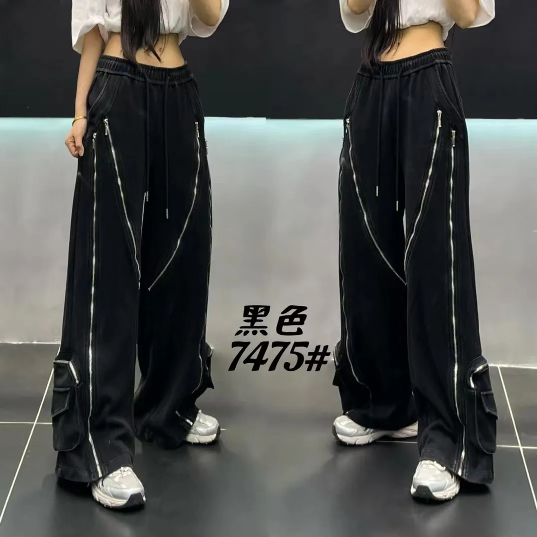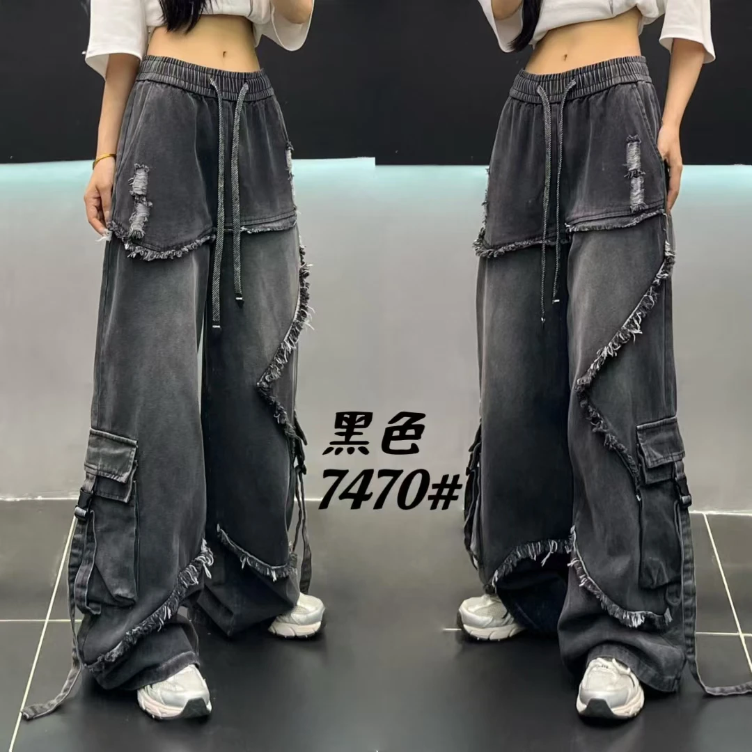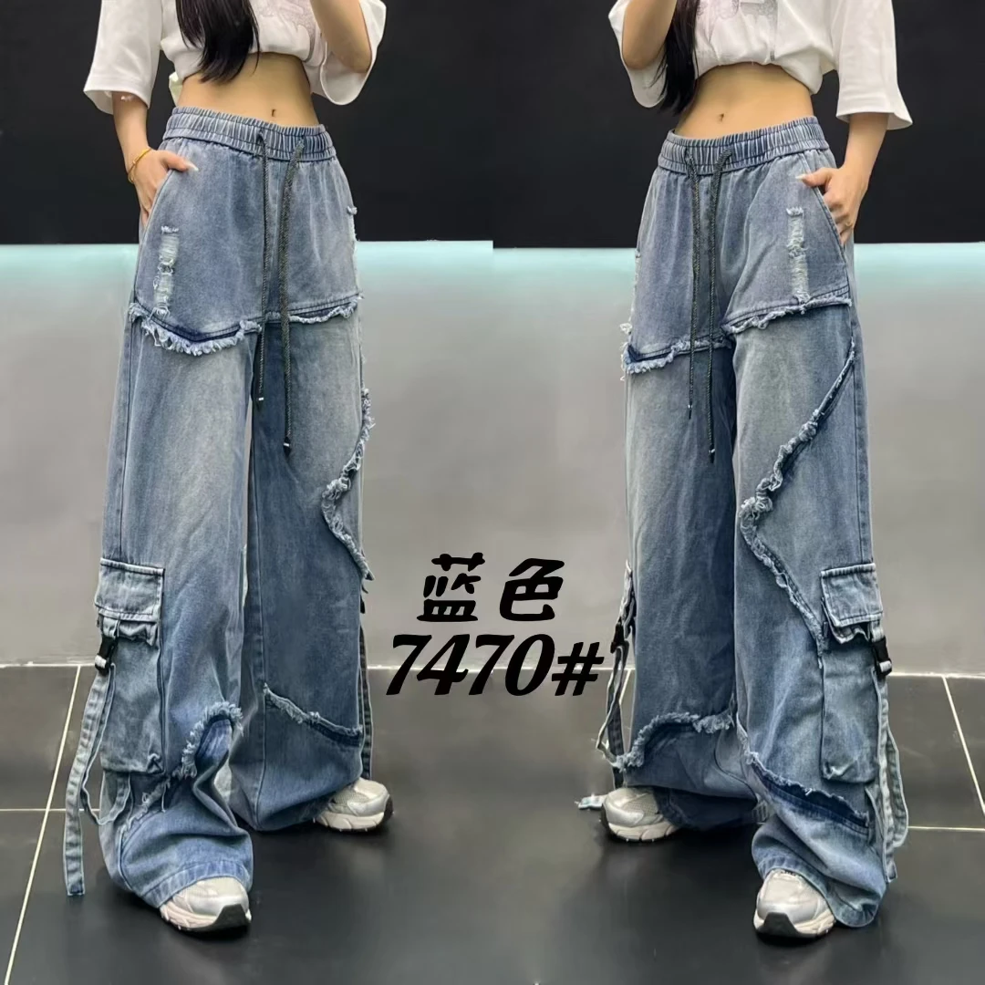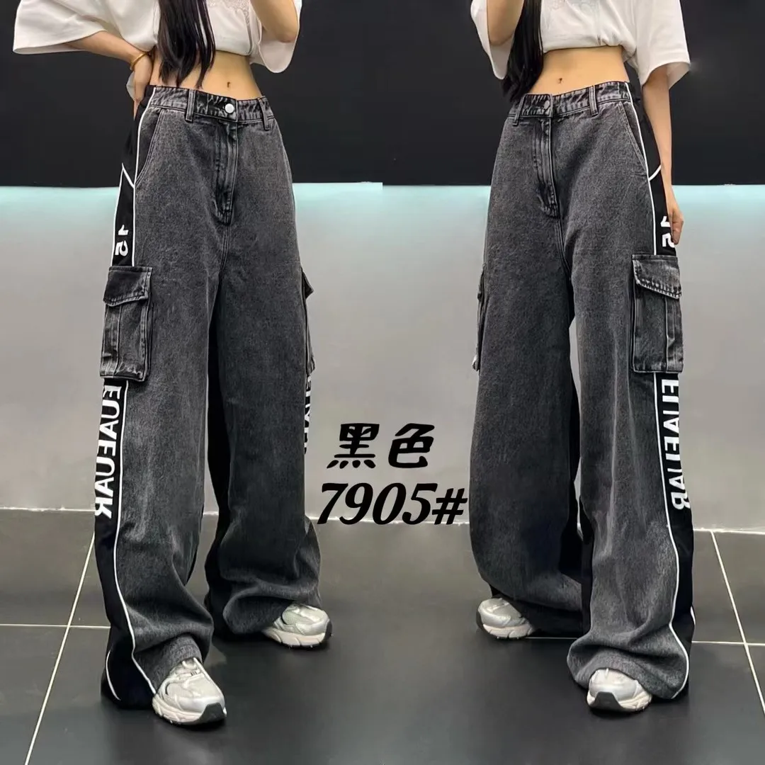Jeans a righe patchwork di moda popolare per il nuovo autunno delle donne High Street dimagranti pantaloni casual a gamba larga lunghi fino al pavimento