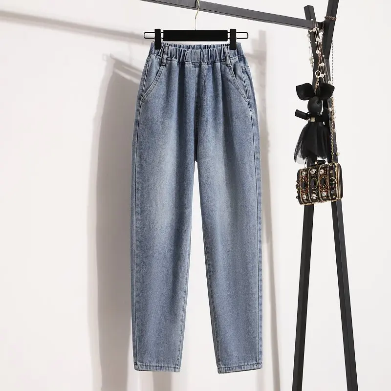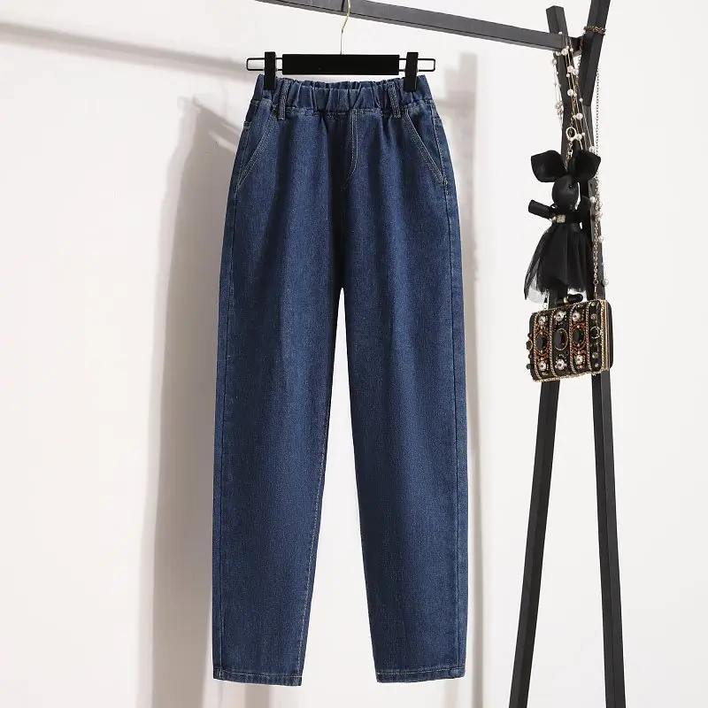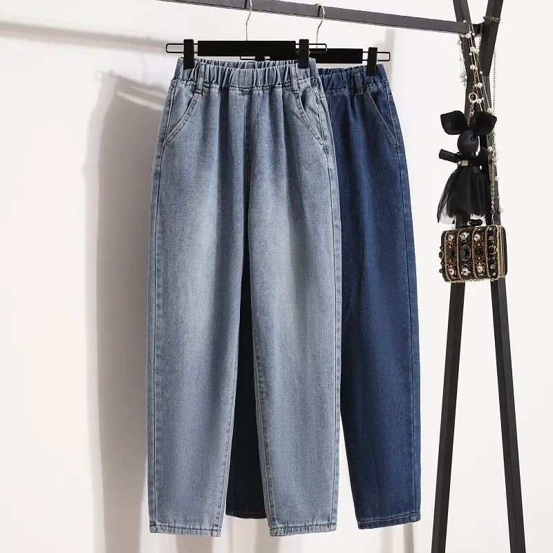 Jeans da donna Primavera e autunno Nuovo abbigliamento da donna taglie forti che copre l’entrega e look snellente Vita elastica Pantaloni Harem da mm a vita alta
