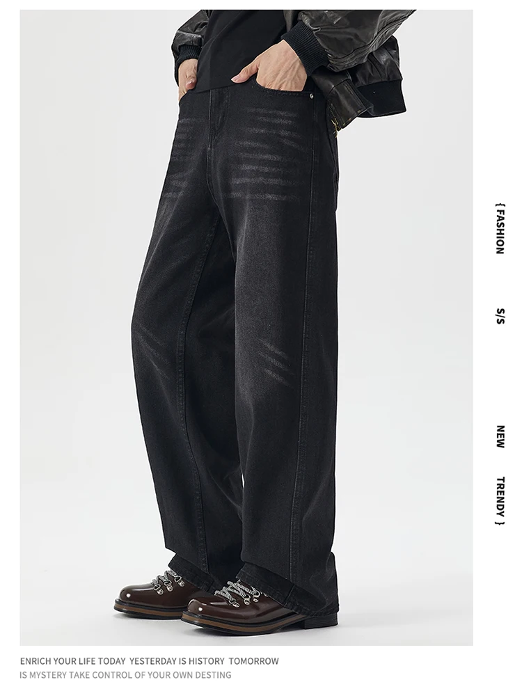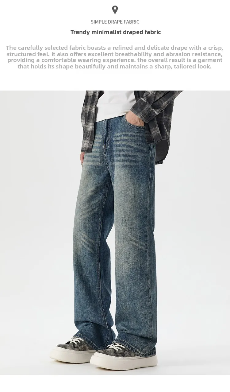 Jeans da strada stile N Autunno Inverno 2025 Nuovi pantaloni da uomo retrò con tubo dritto allentato e fritto