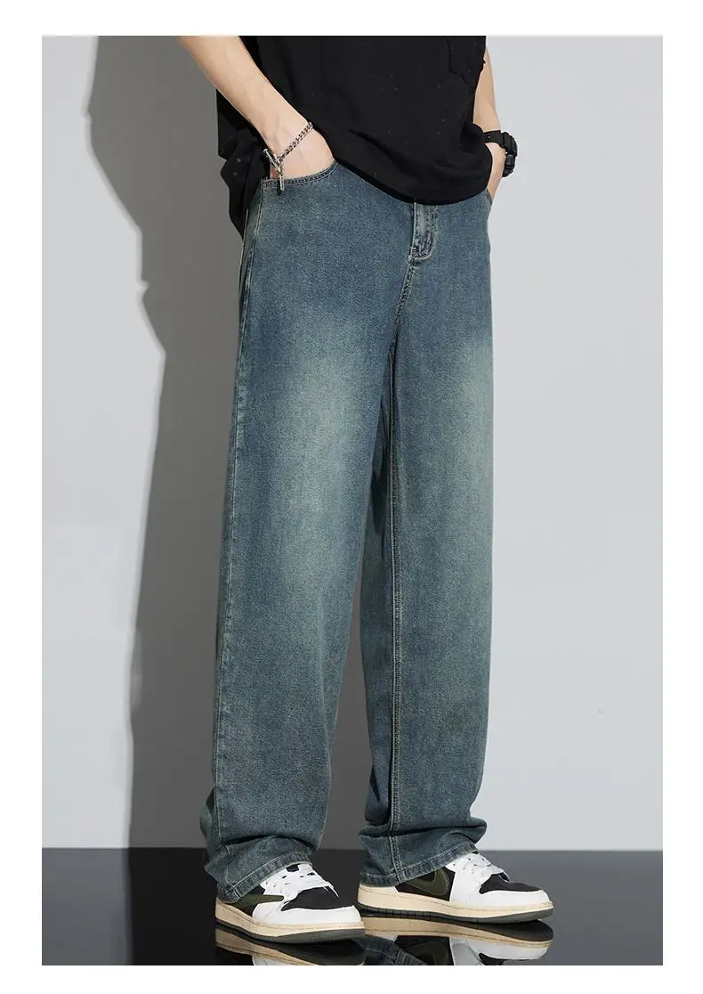 Jeans da uomo dalla vestibilità ampia Tessuto di seta di ghiaccio Design confortevole e traspirante Pantaloni elasticizzati durevoli jeans larghi Jeans larghi Pantaloni in denim