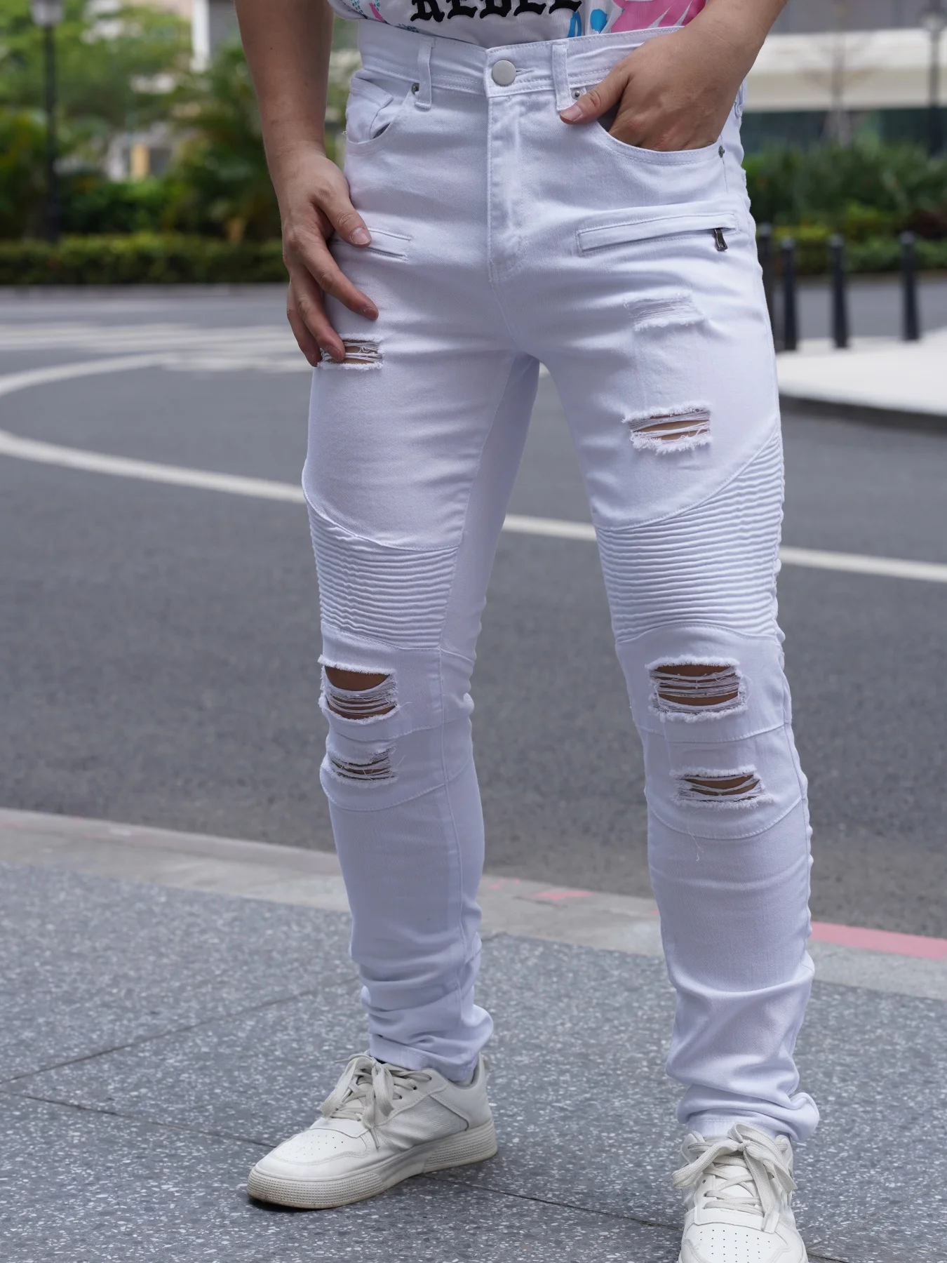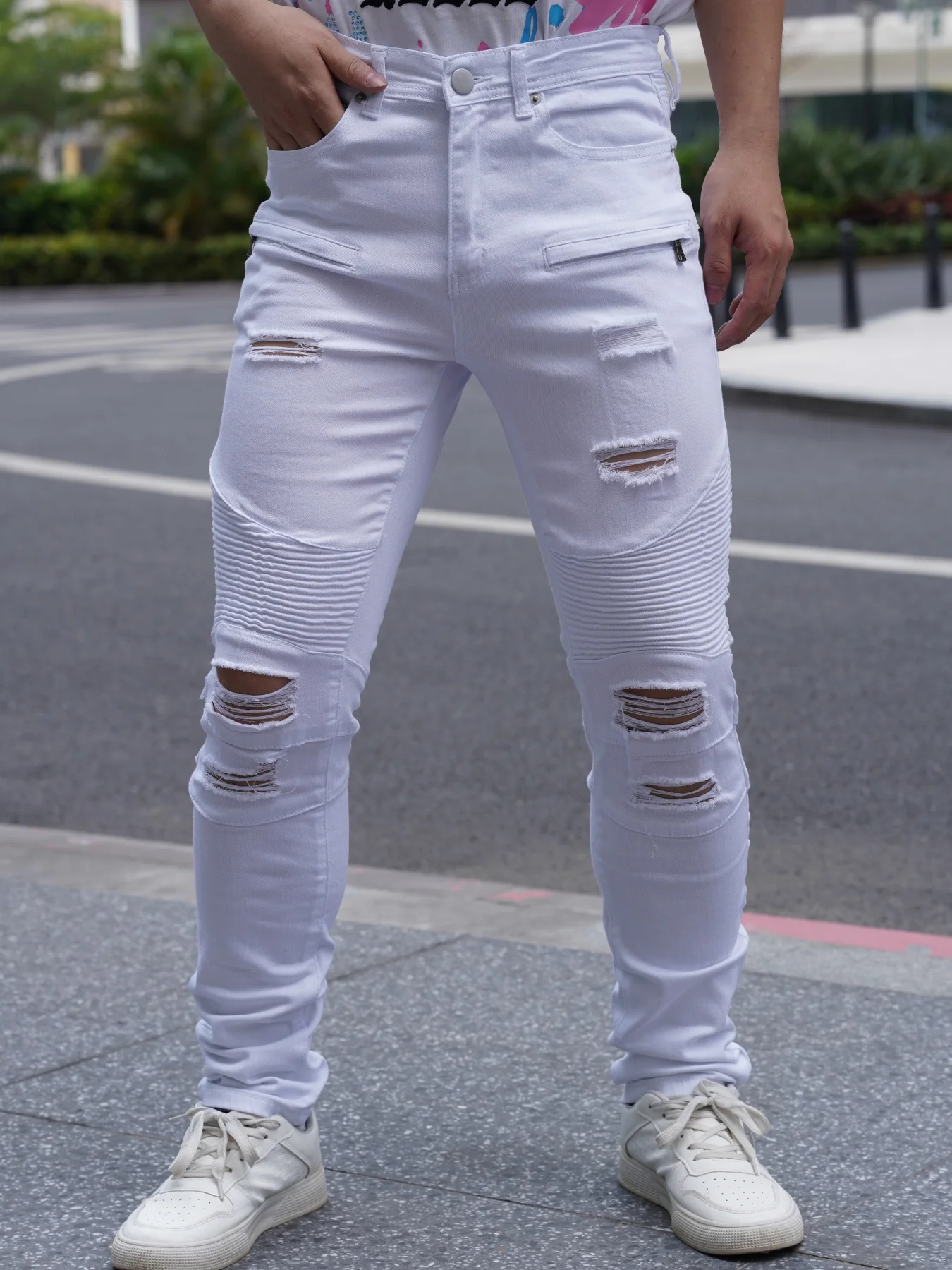 Jeans da uomo in difficoltà alla moda Colore bianco Versatile e facile da abbinare Promozione Offerta Spedizione gratuita per la tua casa