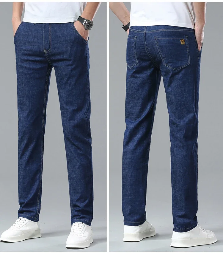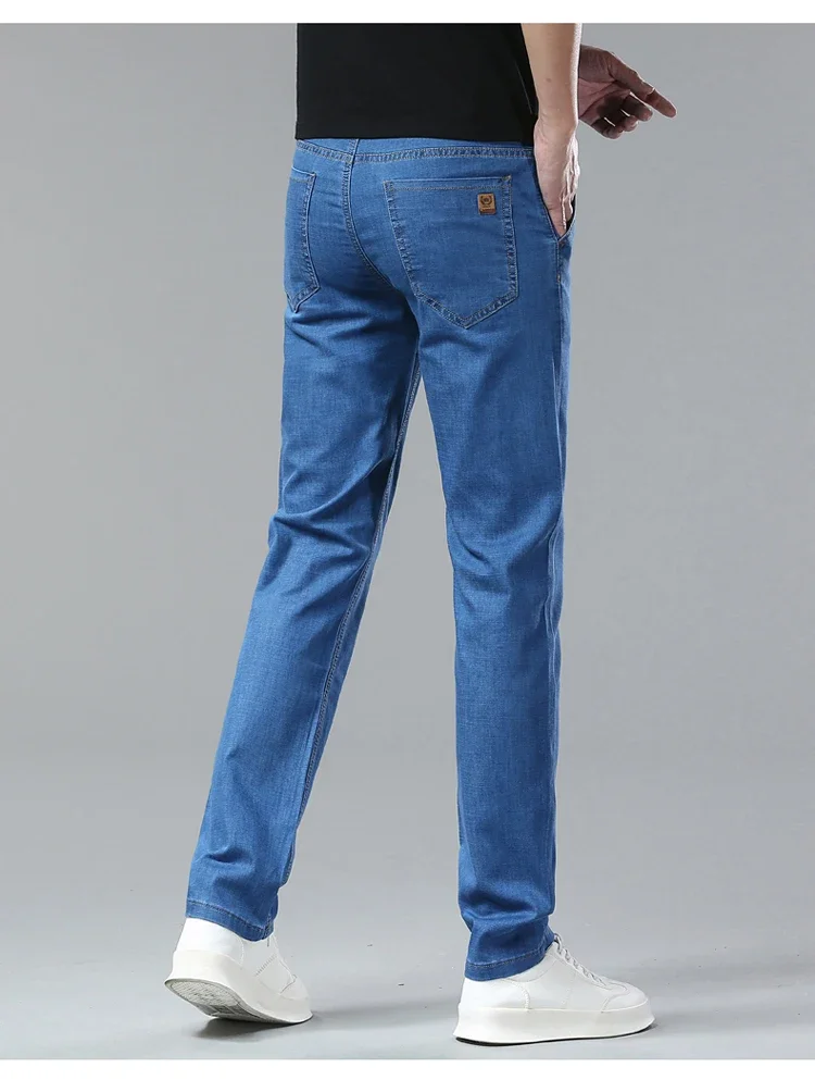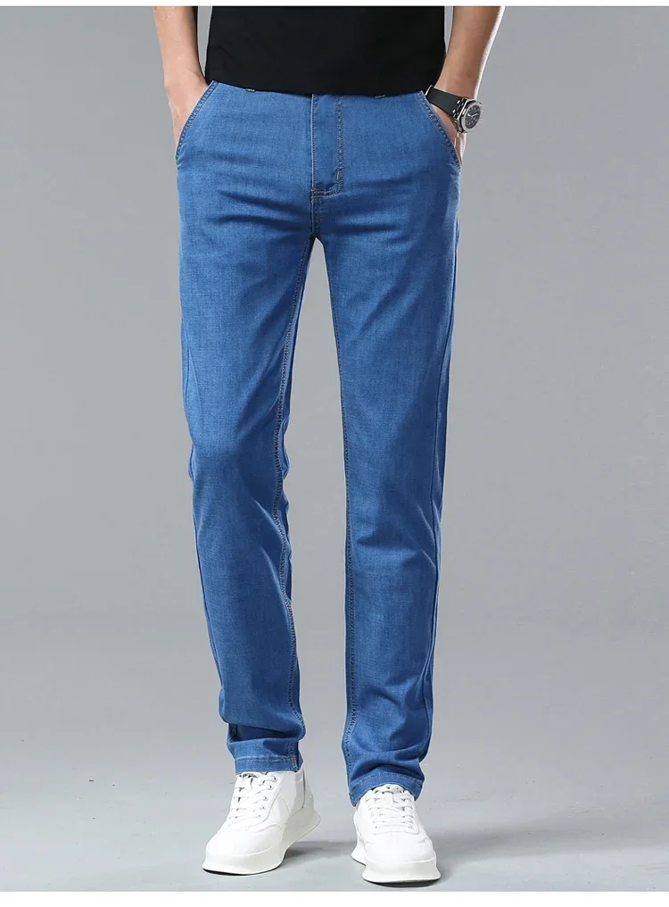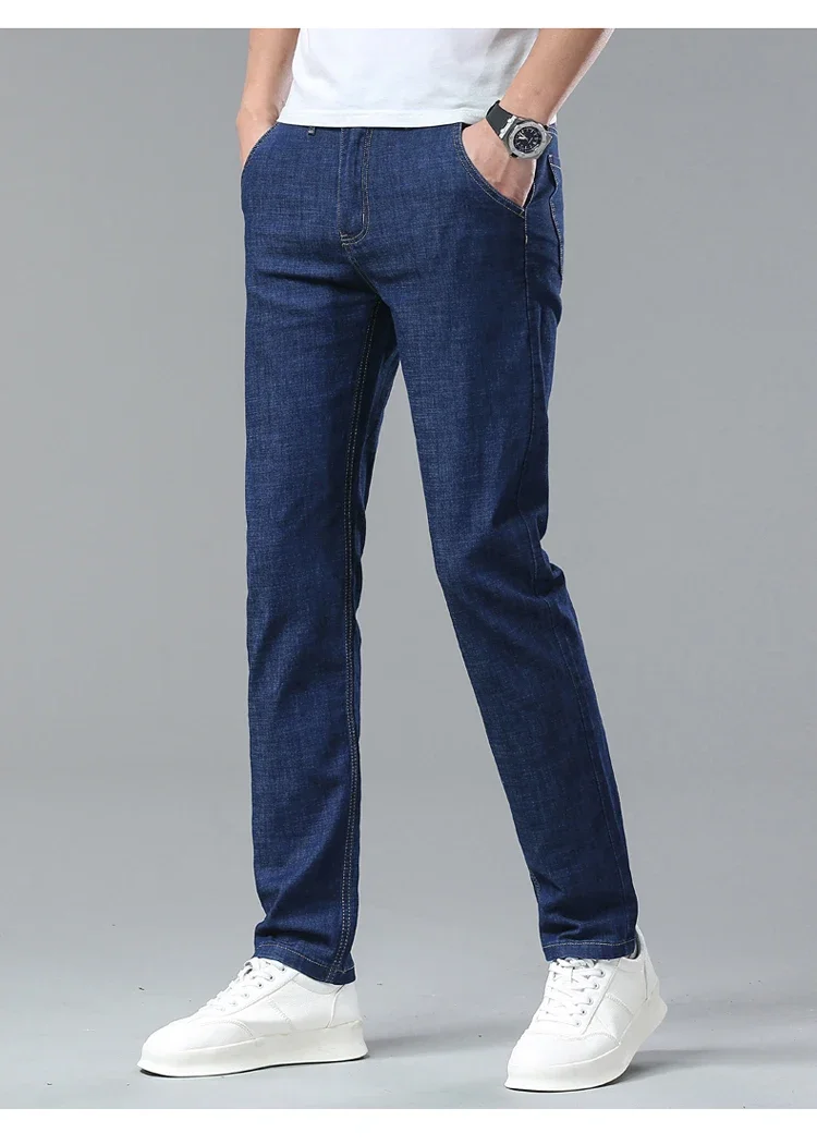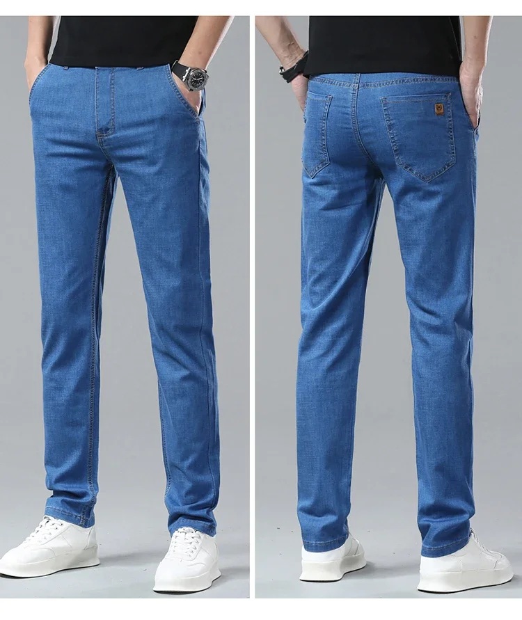 Jeans da uomo in seta di ghiaccio estivi nuovi pantaloni in denim casual da lavoro sottili Lyocell classici tutti abbinati jeans elastici dritti slim fit maschili