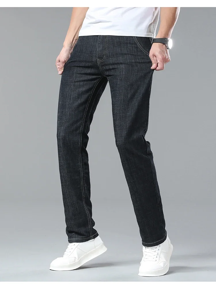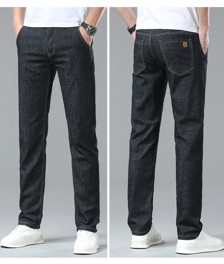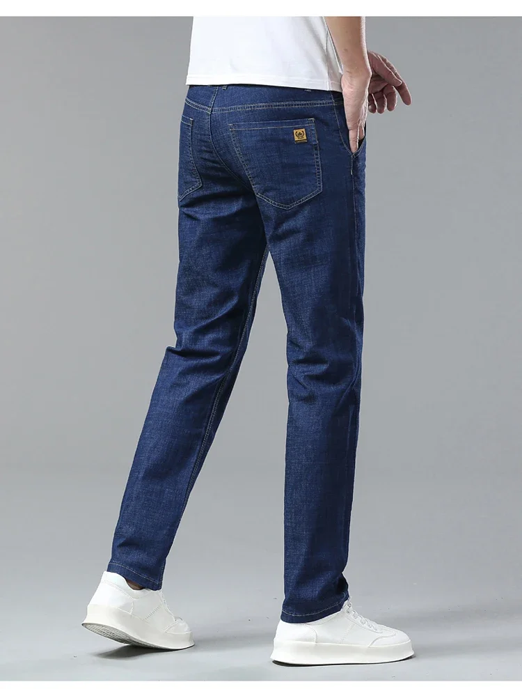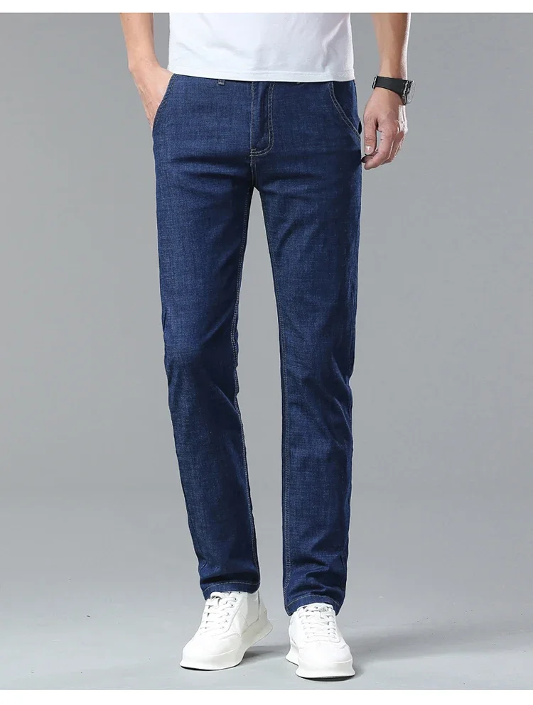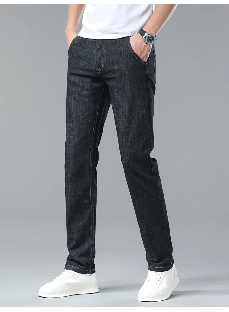 Jeans da uomo in seta di ghiaccio estivi nuovi pantaloni in denim casual da lavoro sottili Lyocell classici tutti abbinati jeans elastici dritti slim fit maschili