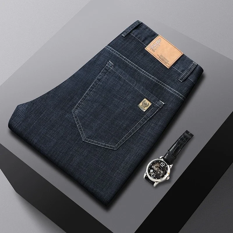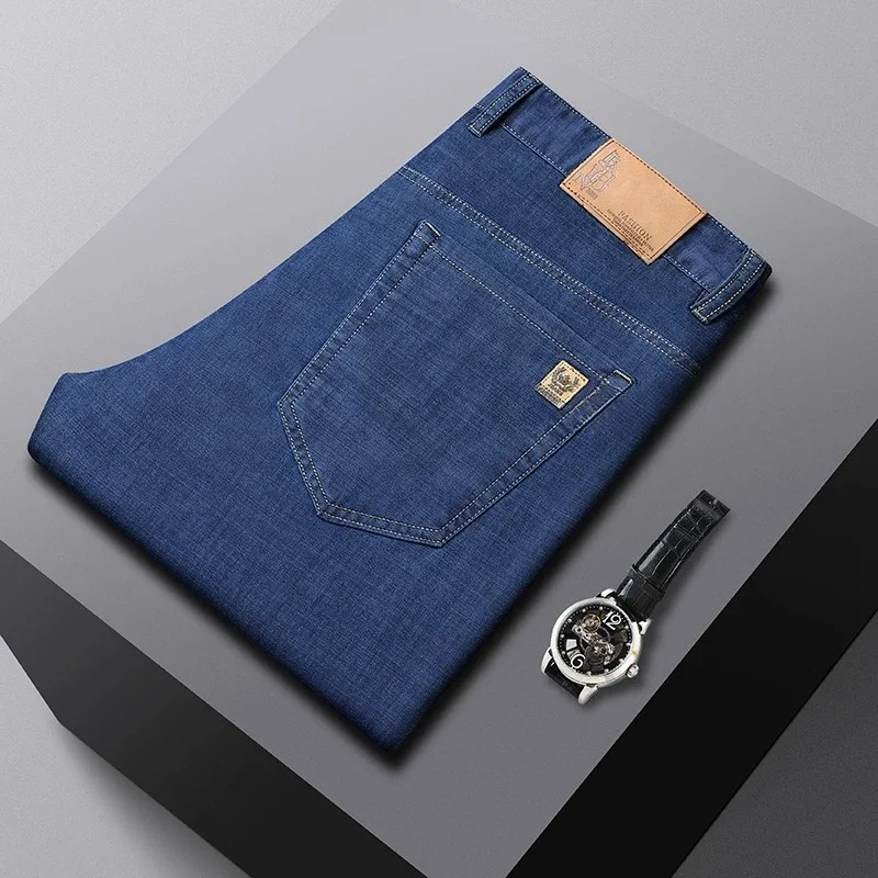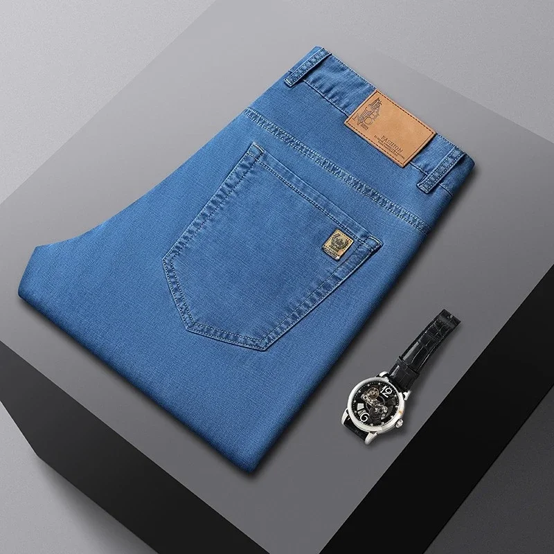 Jeans da uomo in seta di ghiaccio estivi nuovi pantaloni in denim casual da lavoro sottili Lyocell classici tutti abbinati jeans elastici dritti slim fit maschili 1Jeans da uomo in seta di ghiaccio estivi nuovi pantaloni in denim casual da lavoro sottili Lyocell classici tutti abbinati jeans elastici dritti slim fit maschili
