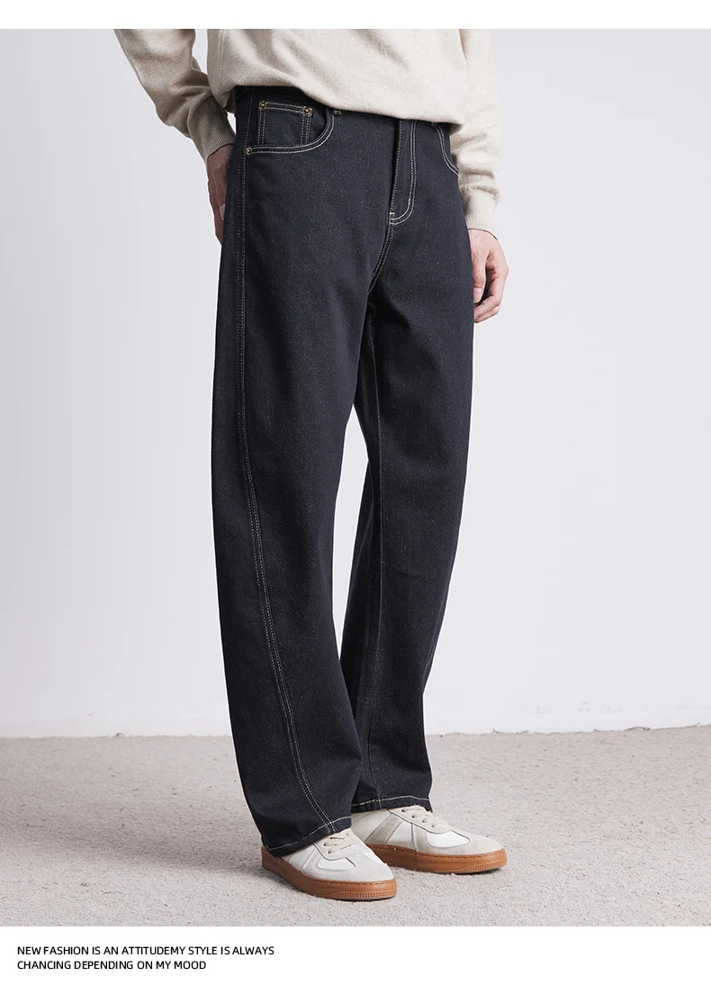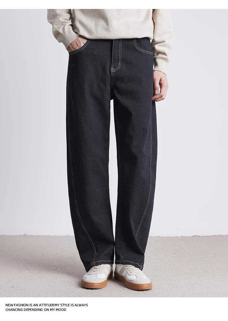 Jeans denim retrò moda uomo primavera autunno nuovi pantaloni dritti multitasche larghi casual a vita media jeans da uomo