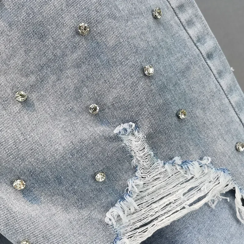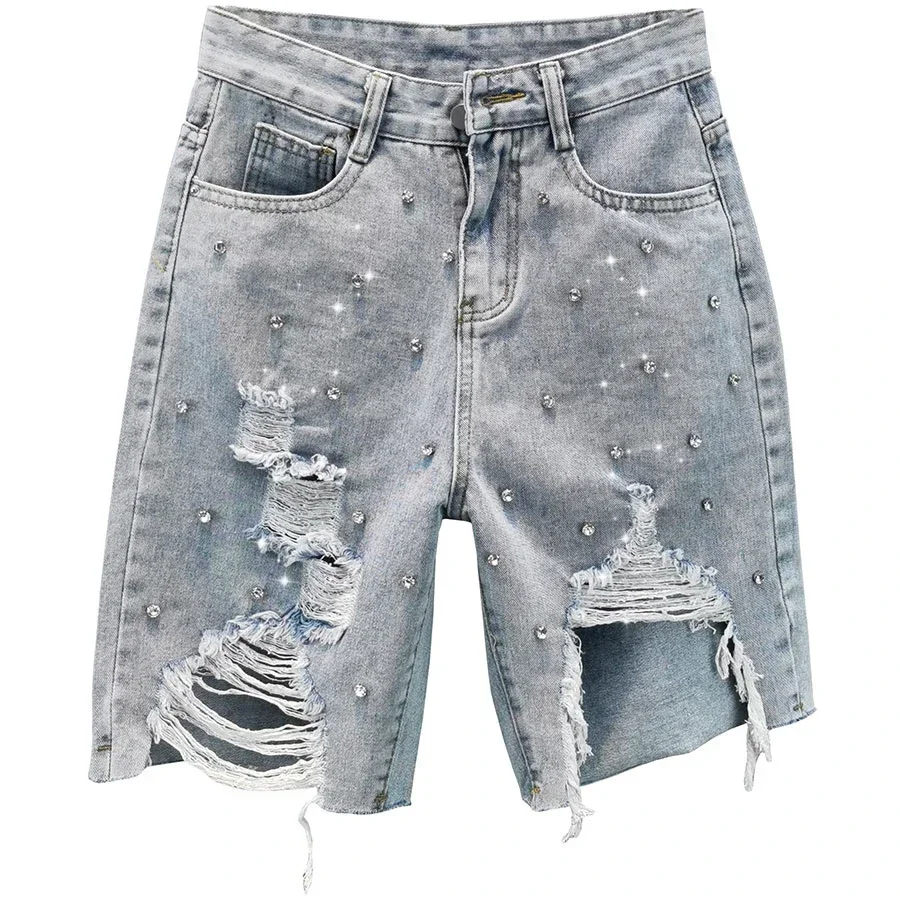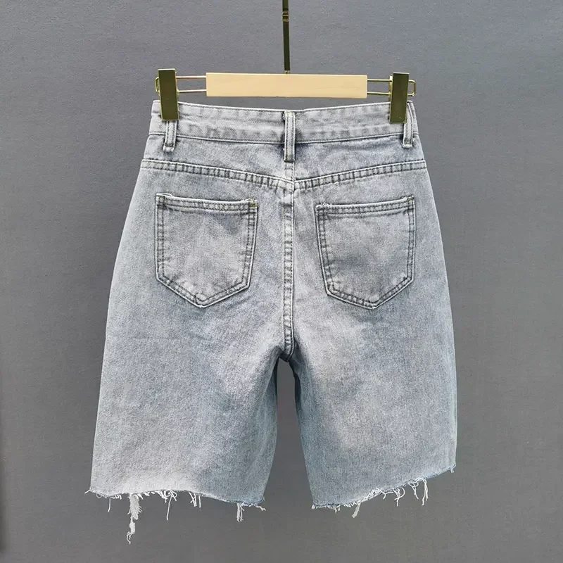 Jeans denim strappati europei 2025 estate nuovi jeans a cinque punti dimagranti larghi a vita alta slim e pesanti 1Jeans denim strappati europei 2025 estate nuovi jeans a cinque punti dimagranti larghi a vita alta slim e pesanti