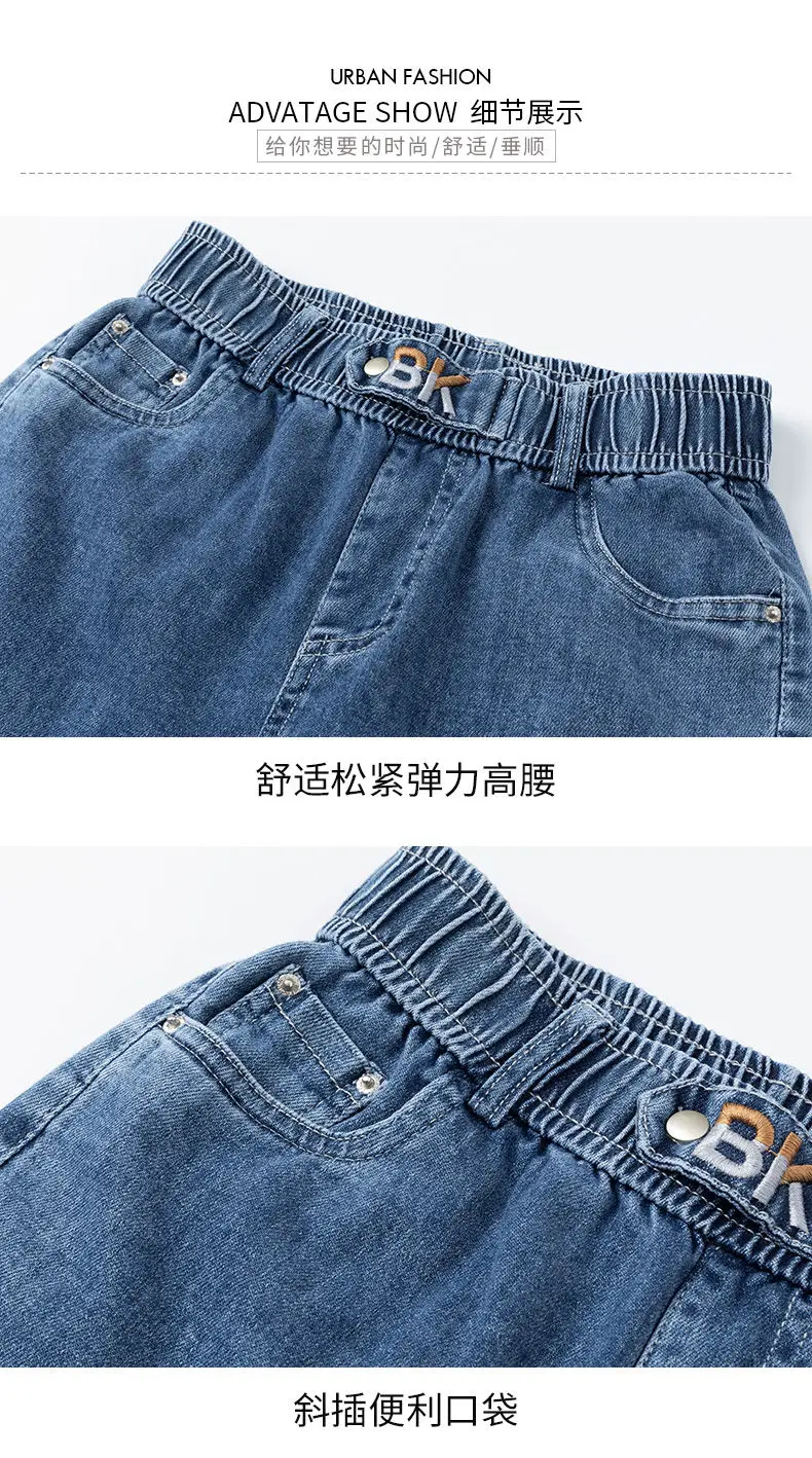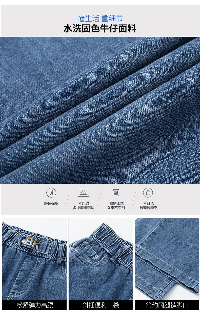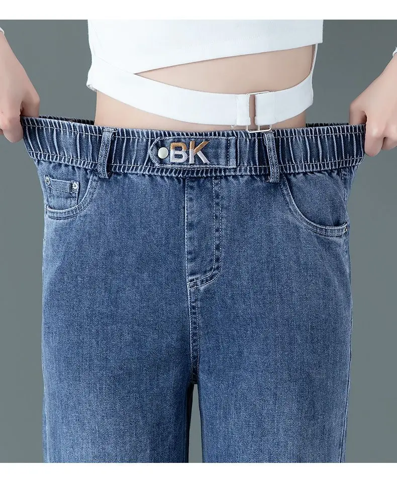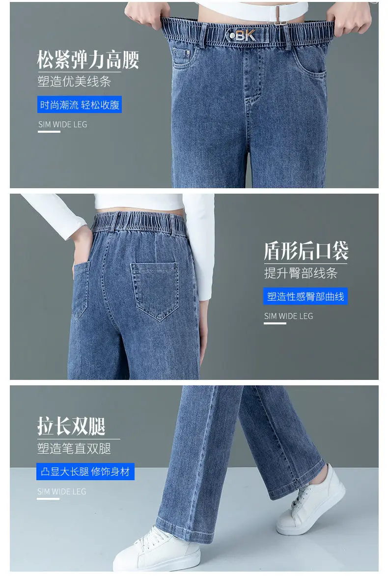 Jeans elastici a vita alta blu Abbigliamento donna 2025 Primavera Autunno Nuovi pantaloni larghi a gamba dritta Pantaloni casual in denim a gamba larga