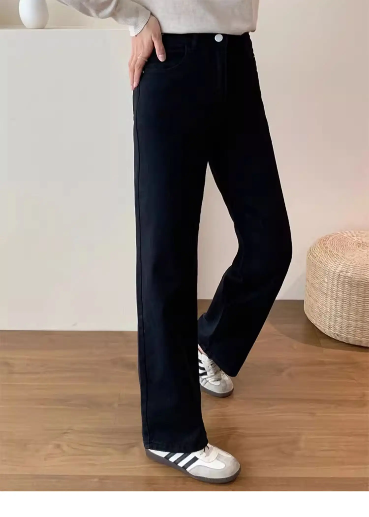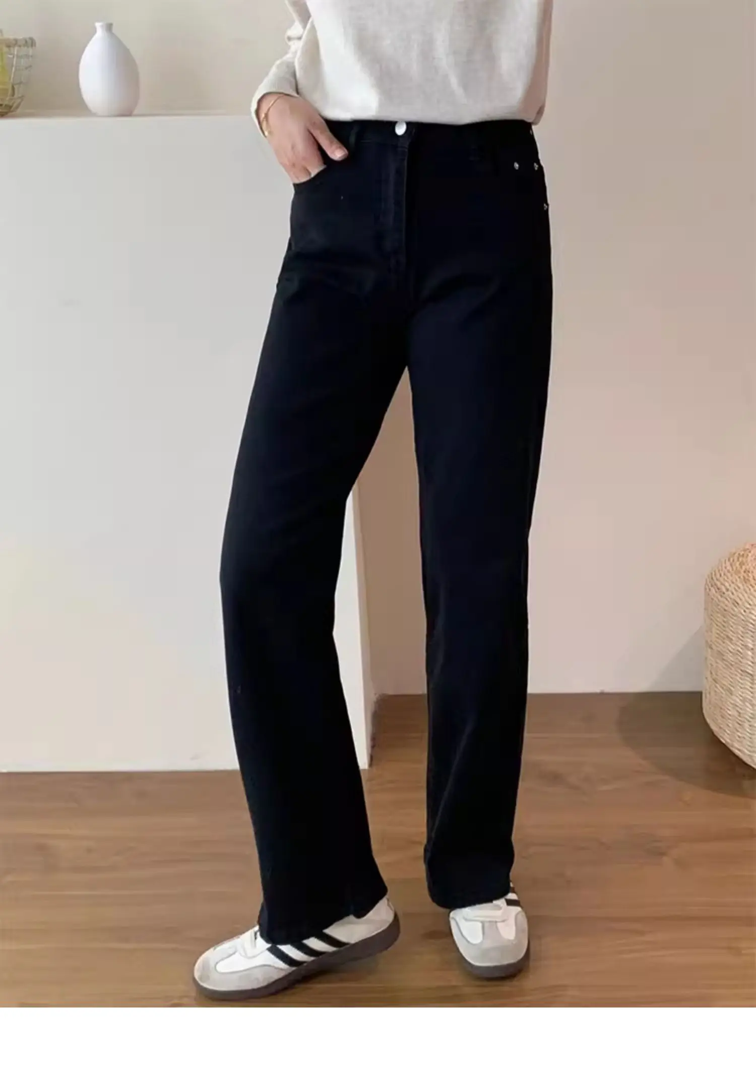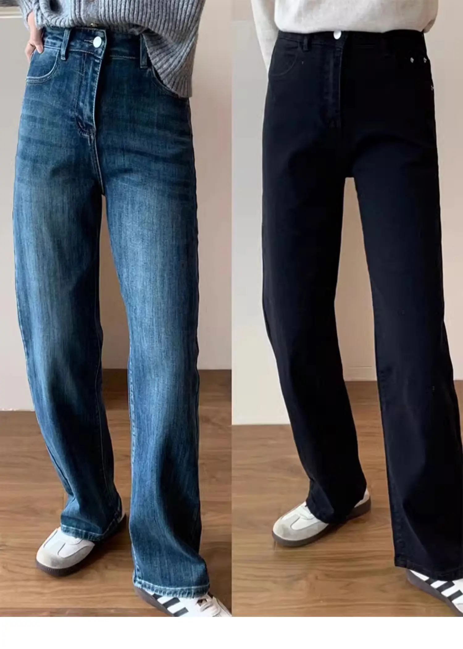Jeans elasticizzati Vita da donna Jeans larghi a gamba dritta a forma di pera Pantaloni in denim a tubo elasticizzato sottile a vita alta di nuova taglia autunno da donna