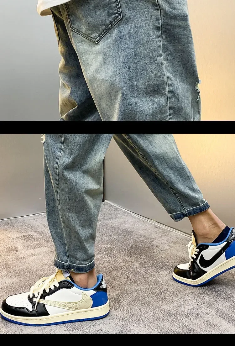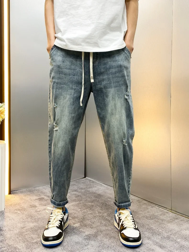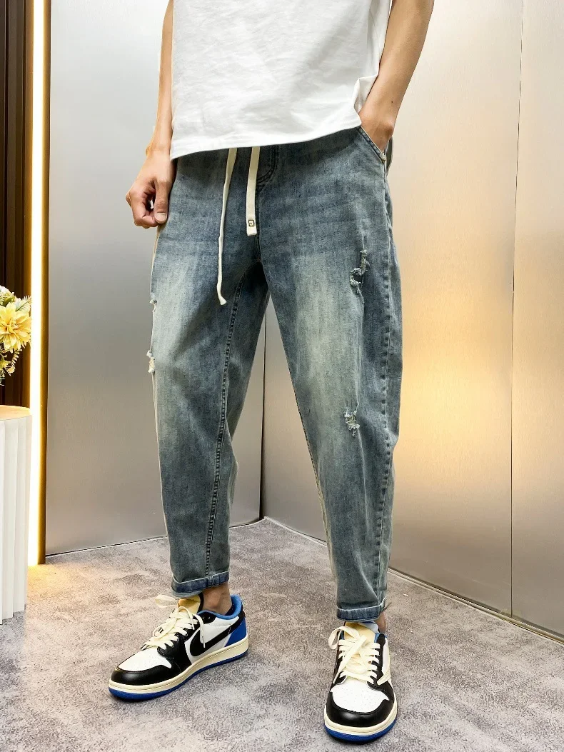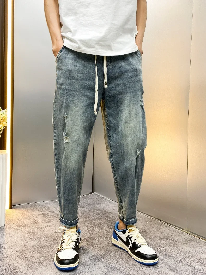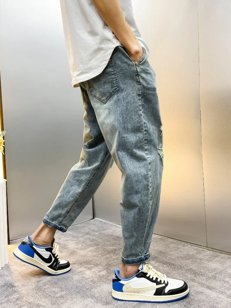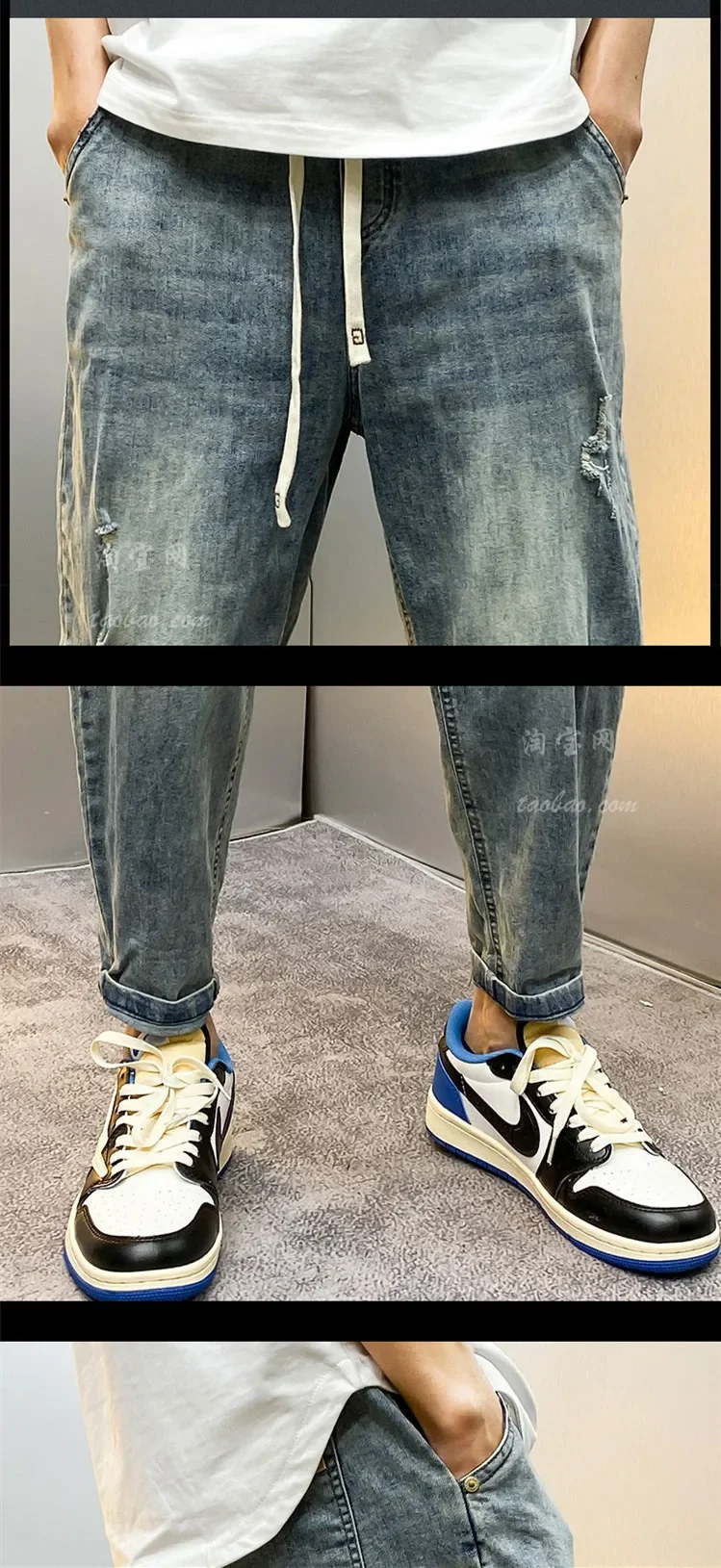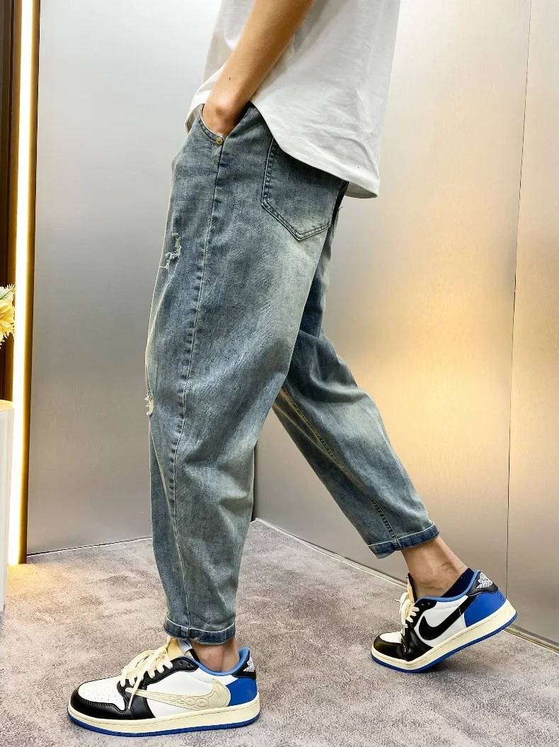 Jeans Harem larghi da uomo vintage Jeans strappati con foro a nove punte stile estivo giovanile Scena casual Tendenza alla moda 1Jeans Harem larghi da uomo vintage Jeans strappati con foro a nove punte stile estivo giovanile Scena casual Tendenza alla moda