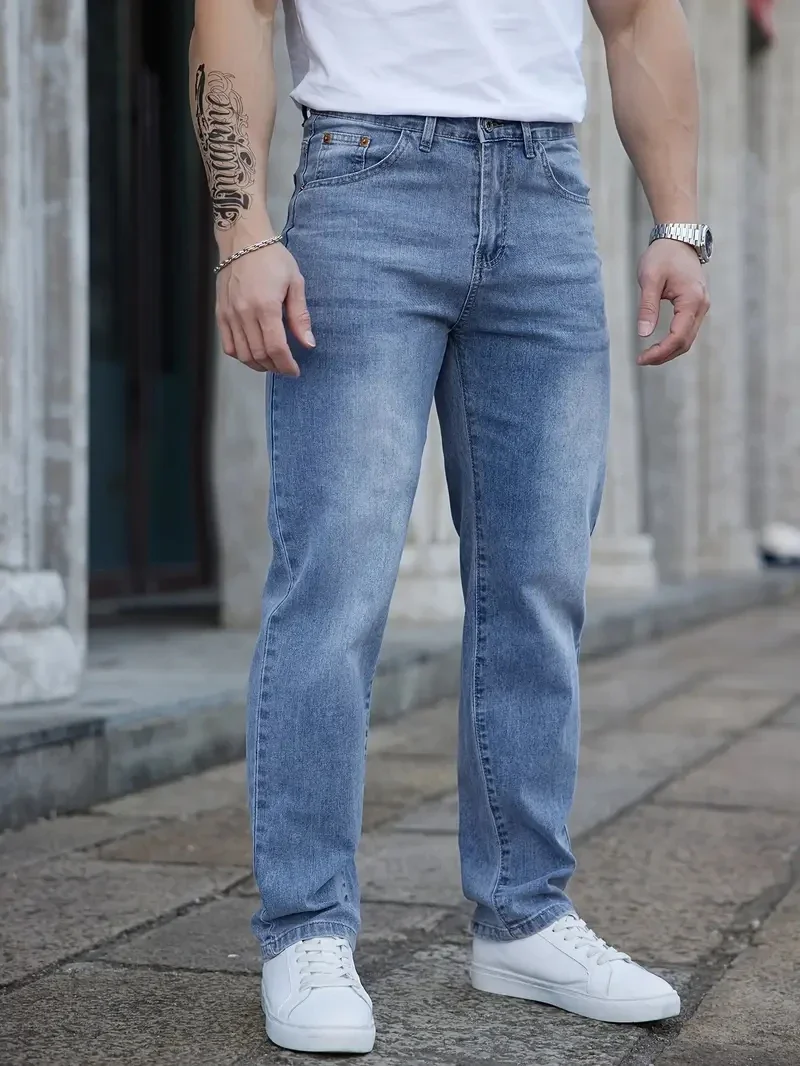 Jeans larghi elasticizzati da uomo sottili estivi 2025 Pantaloni in denim dritti casual da lavoro con ricamo in vita elastica Stile classico maschile