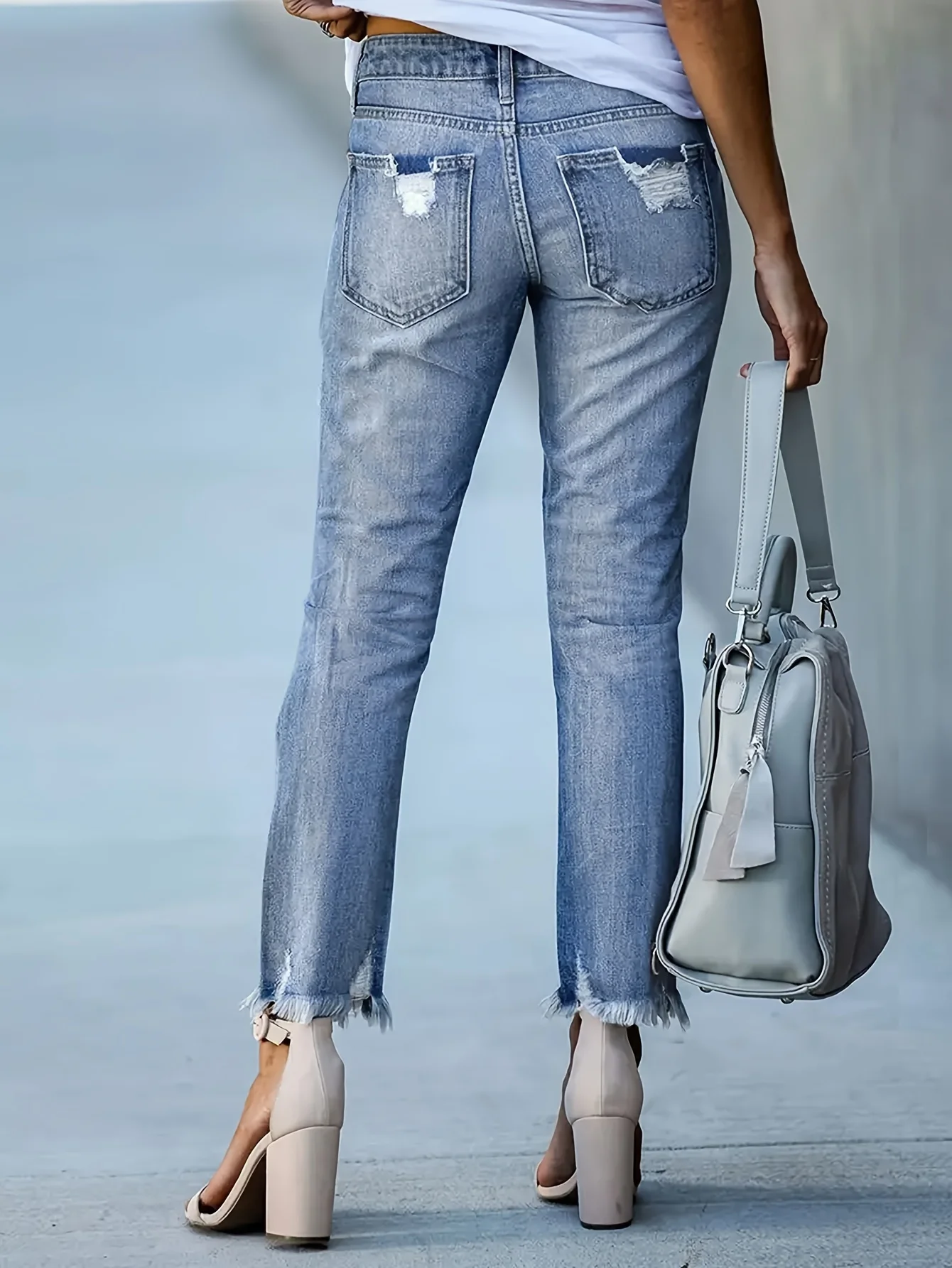 Aspetto invecchiato: I dettagli strappati aggiungono un tocco in stile street, perfetto per le donne che vogliono esprimere la propria individualità e il senso della moda dallo spirito libero.