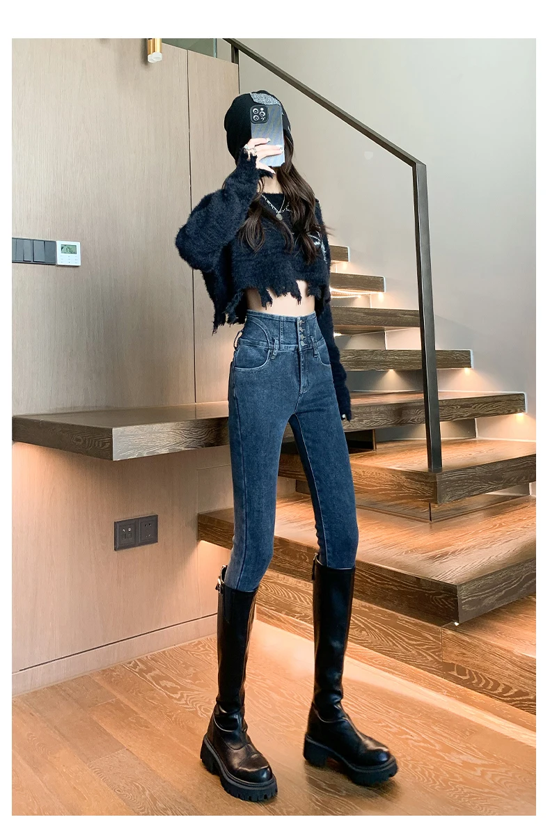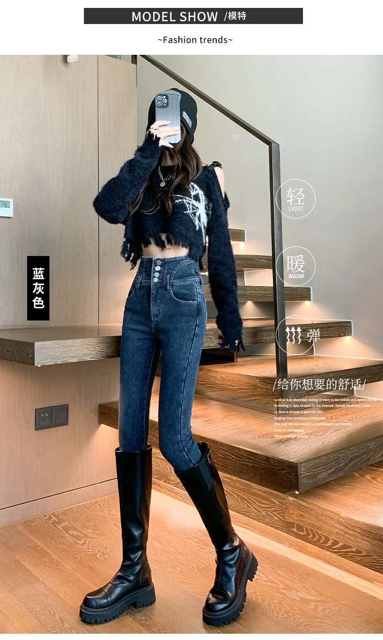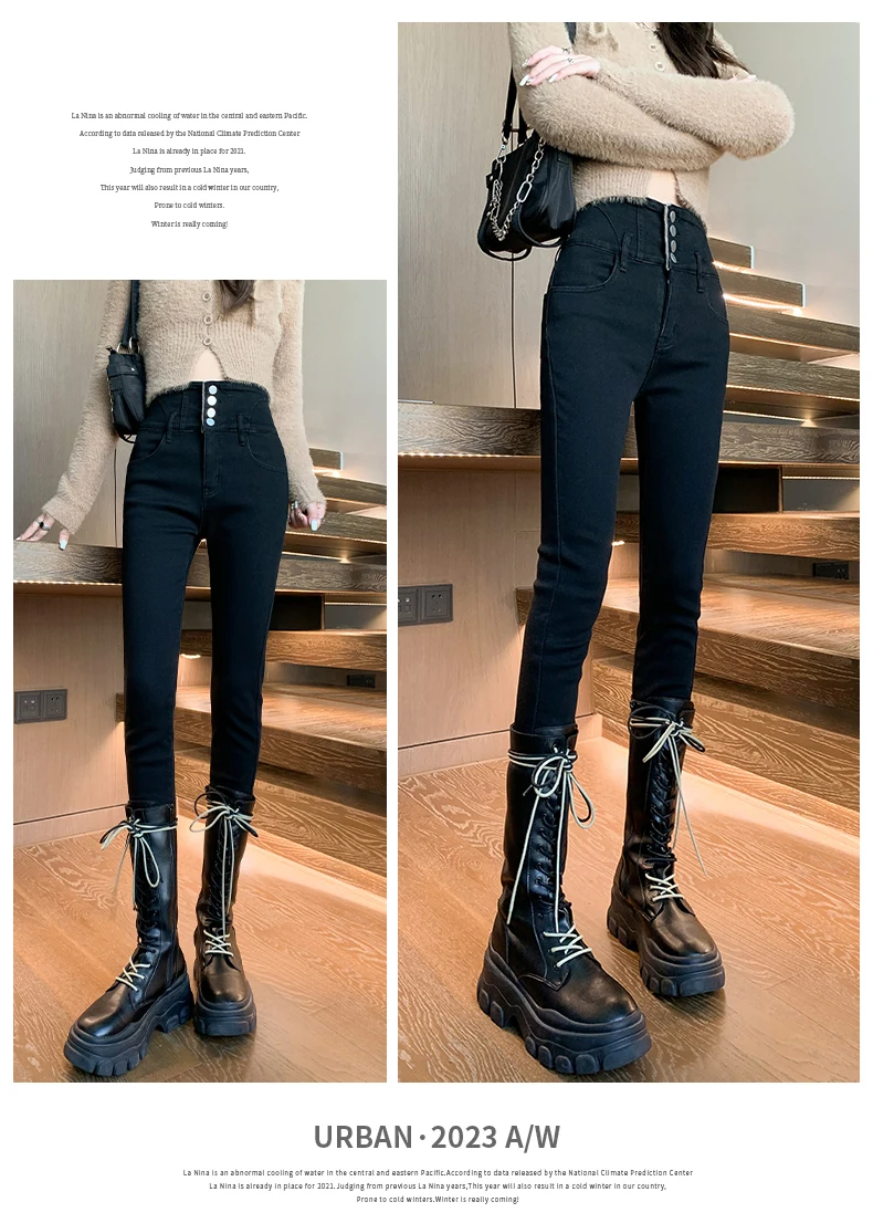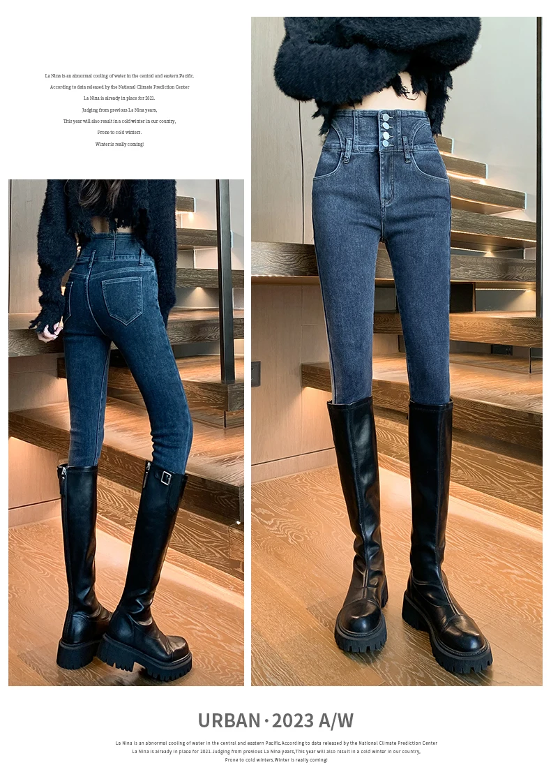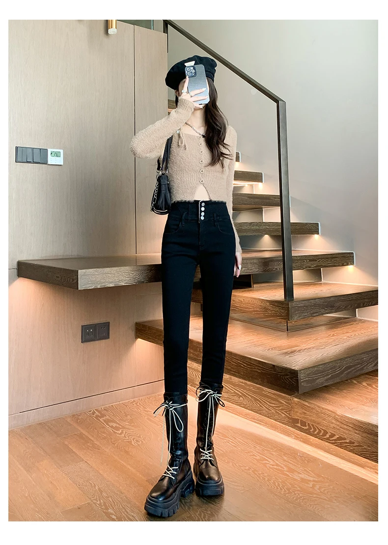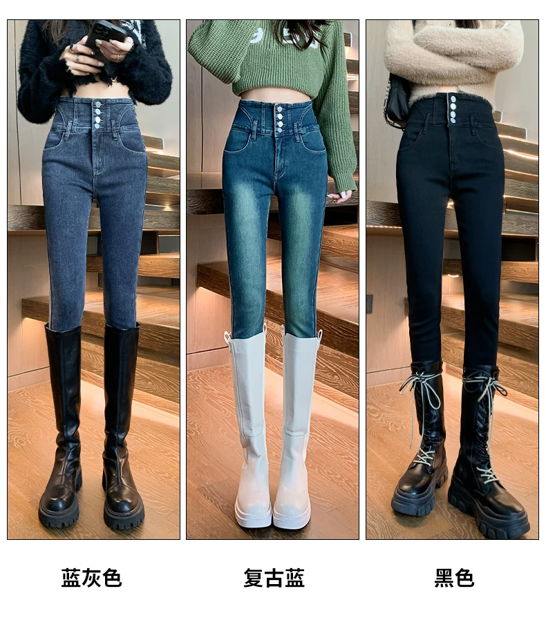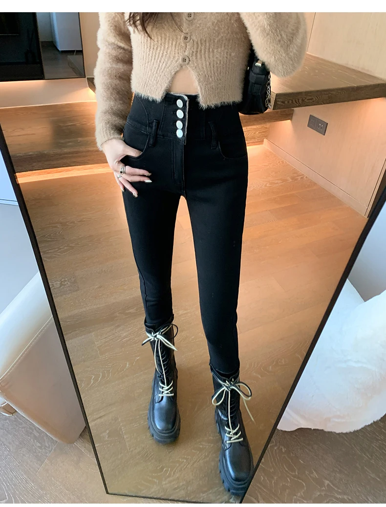 Jeans termici da donna Pantaloni a matita skinny elasticizzati in pile addensato caldo da neve invernale Pantaloni coreani in peluche di velluto slim fit