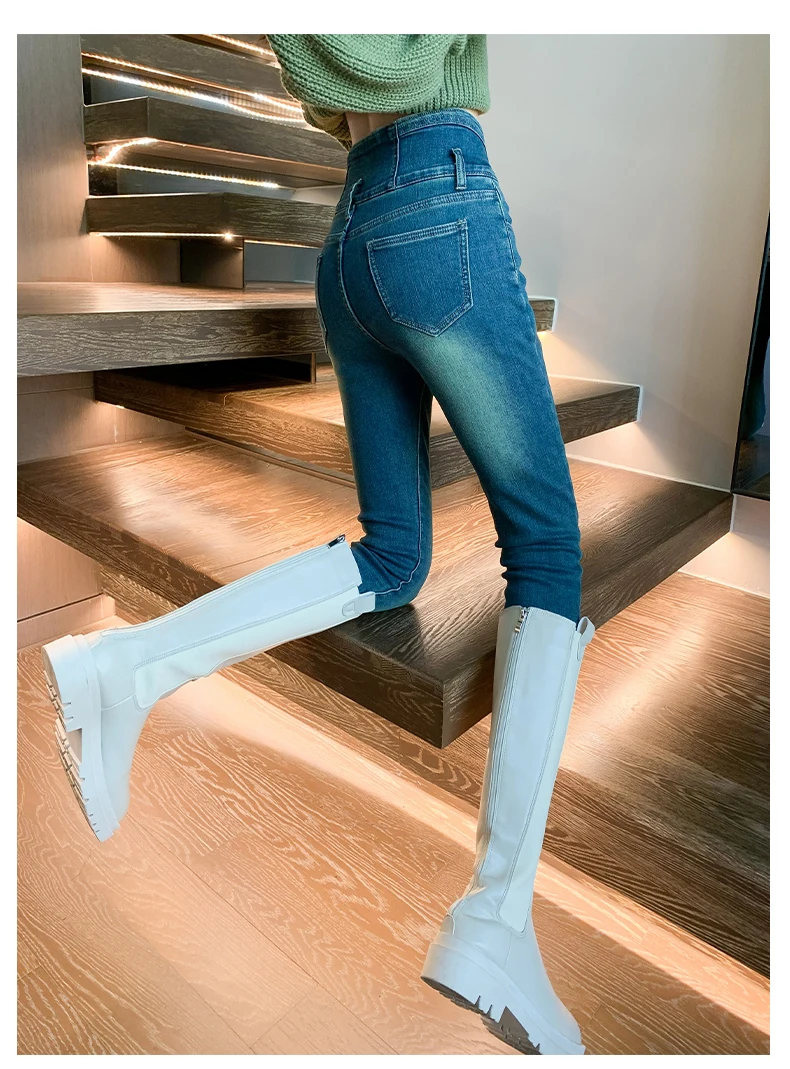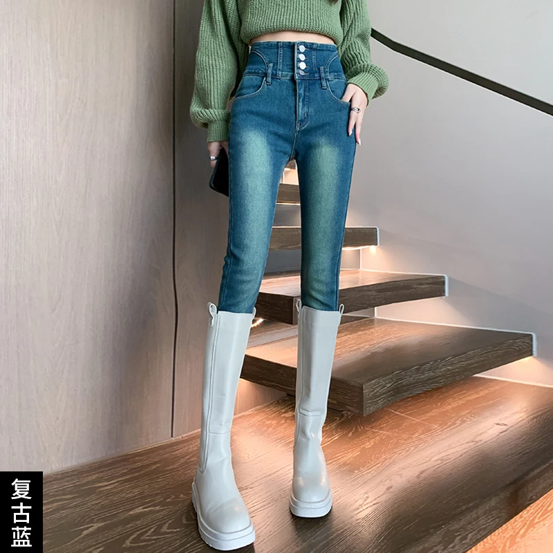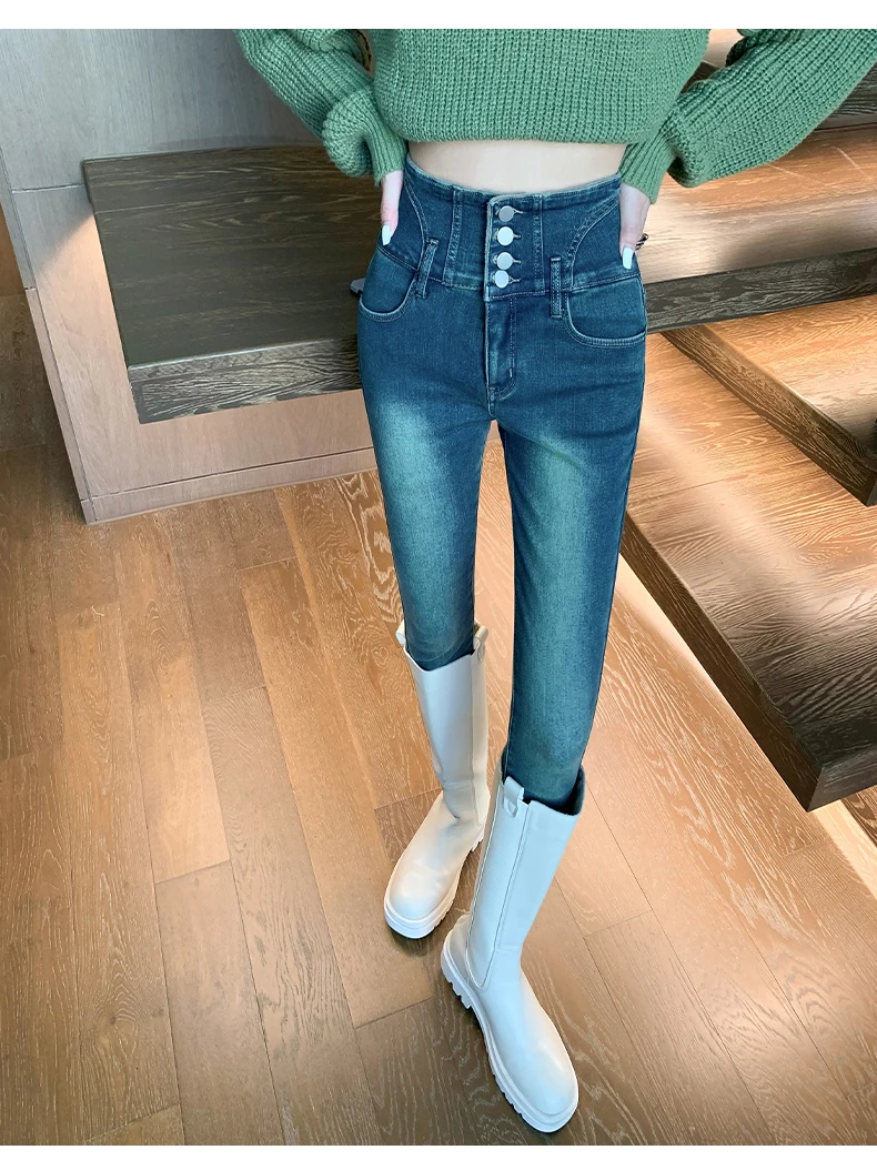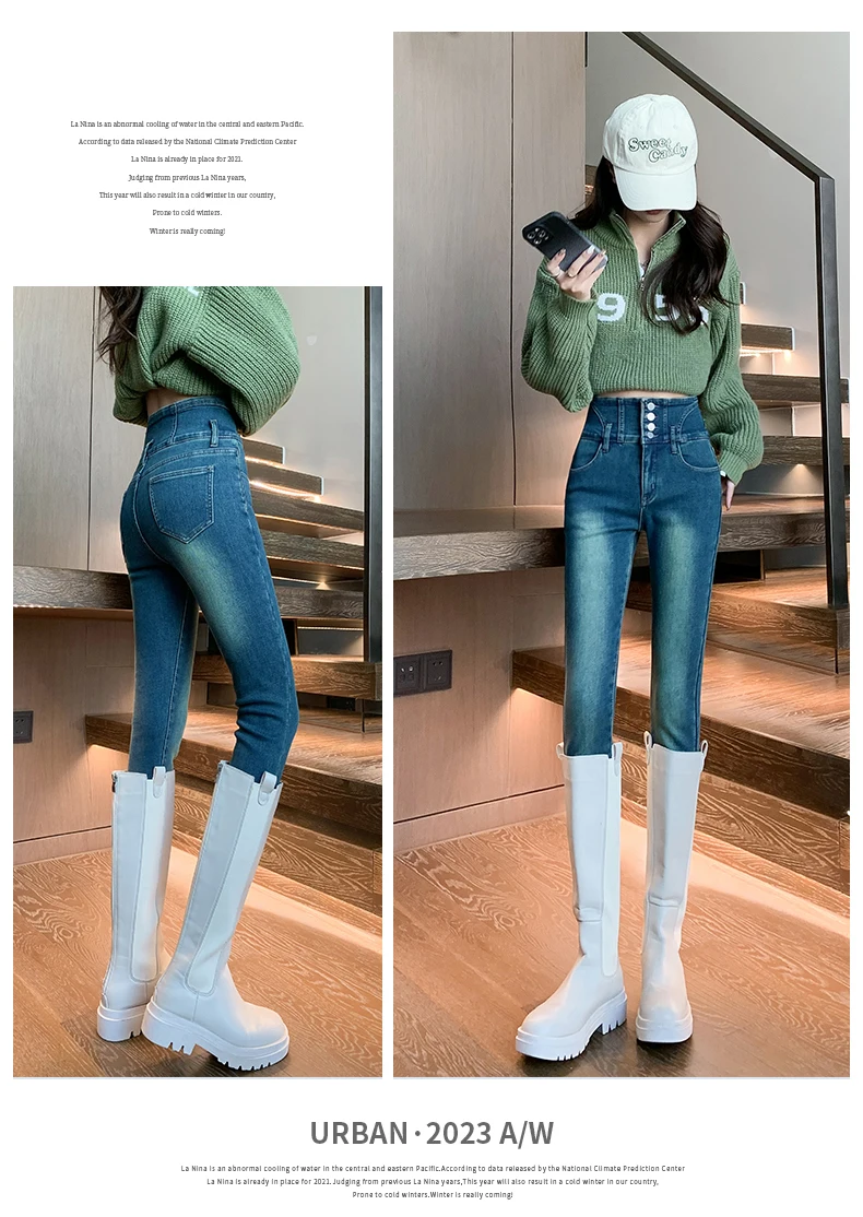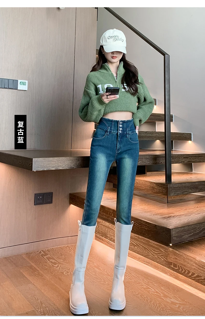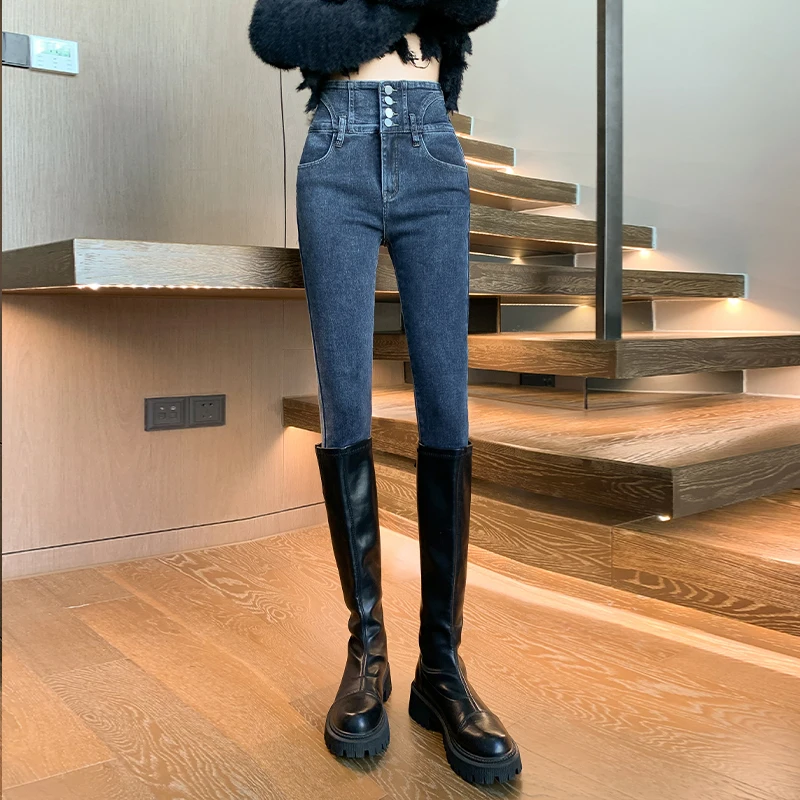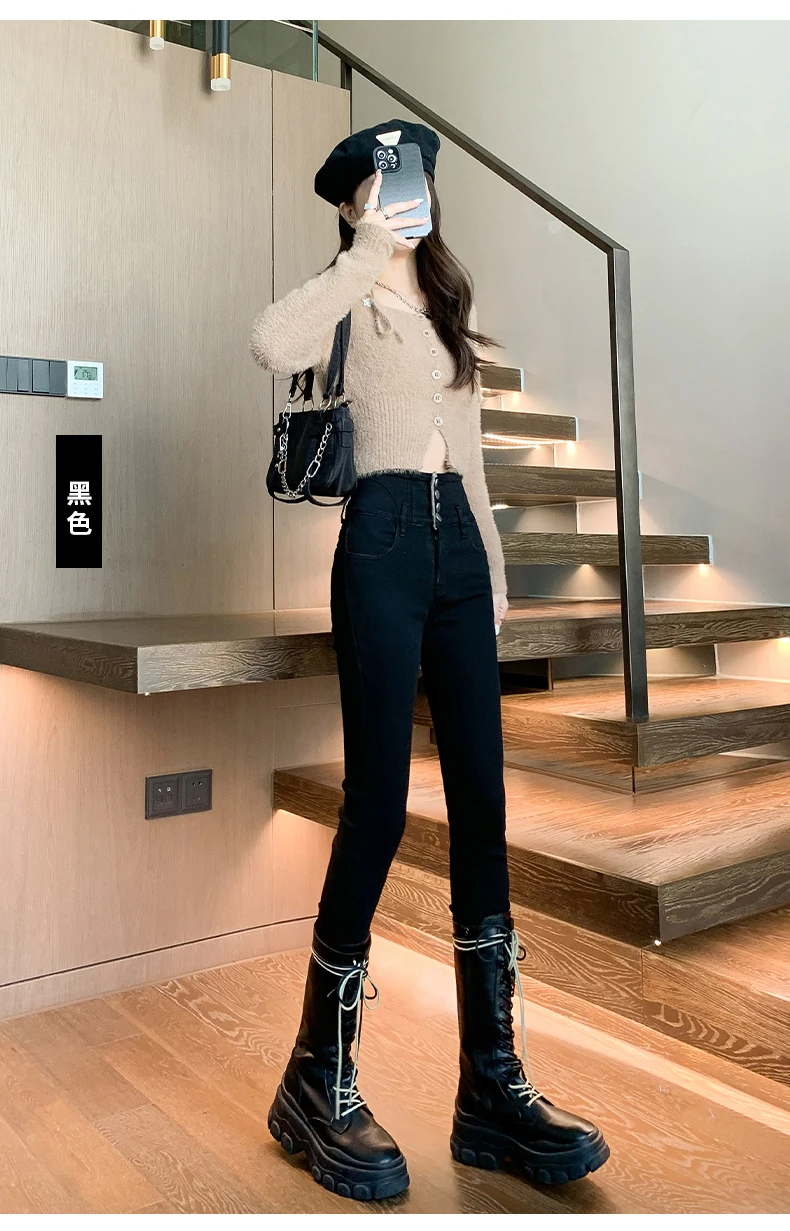 Jeans termici da donna Pantaloni a matita skinny elasticizzati in pile addensato caldo da neve invernale Pantaloni coreani in peluche di velluto slim fit
