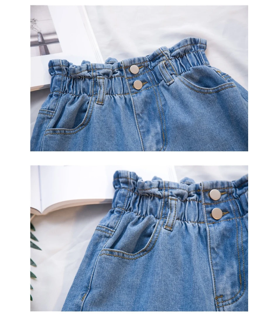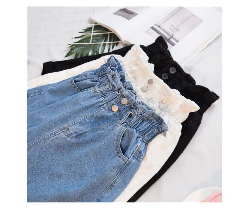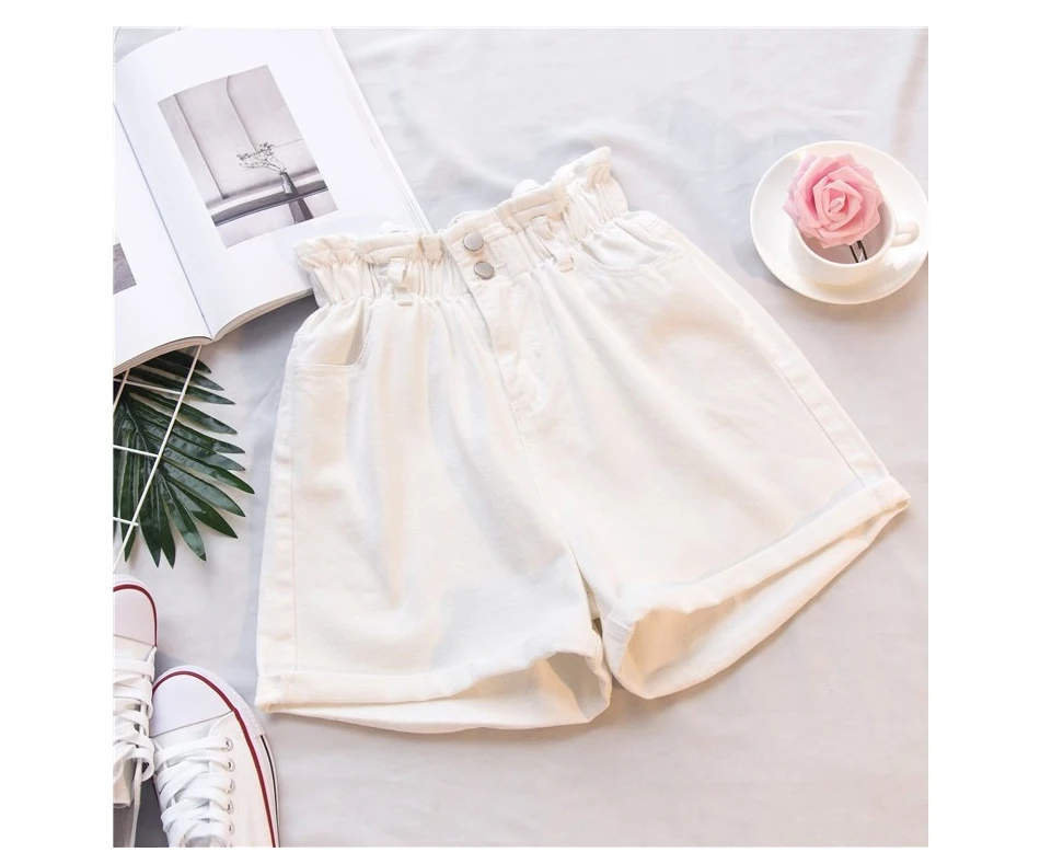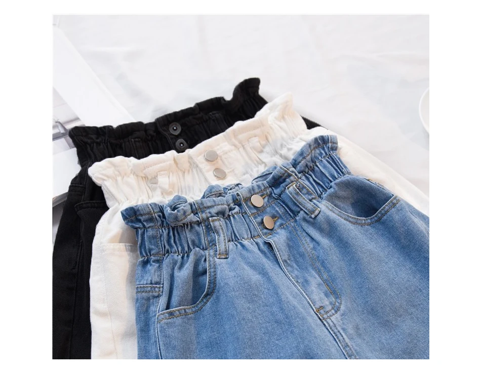 Jielur estate nero donna pantaloncini di Jeans donna S-5XL Harem arruffato bianco blu pantaloncini a vita alta Jeans corti elastici femminili 1Jielur estate nero donna pantaloncini di Jeans donna S-5XL Harem arruffato bianco blu pantaloncini a vita alta Jeans corti elastici femminili