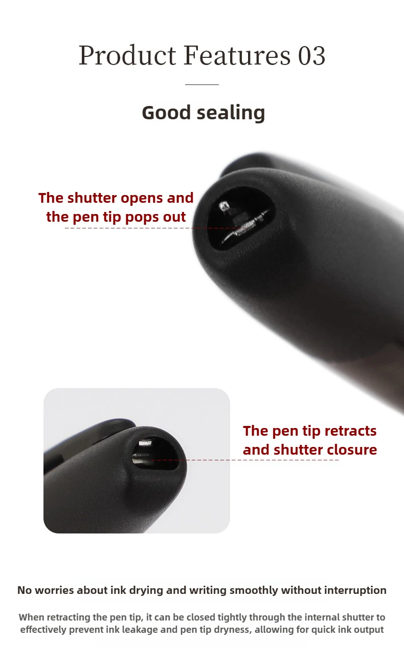 【Eccellenti prestazioni di tenuta】: Il design del pennino a scatto previene efficacemente le perdite di inchiostro e l’asciugatura del pennino, garantendo un’esperienza di scrittura fluida.