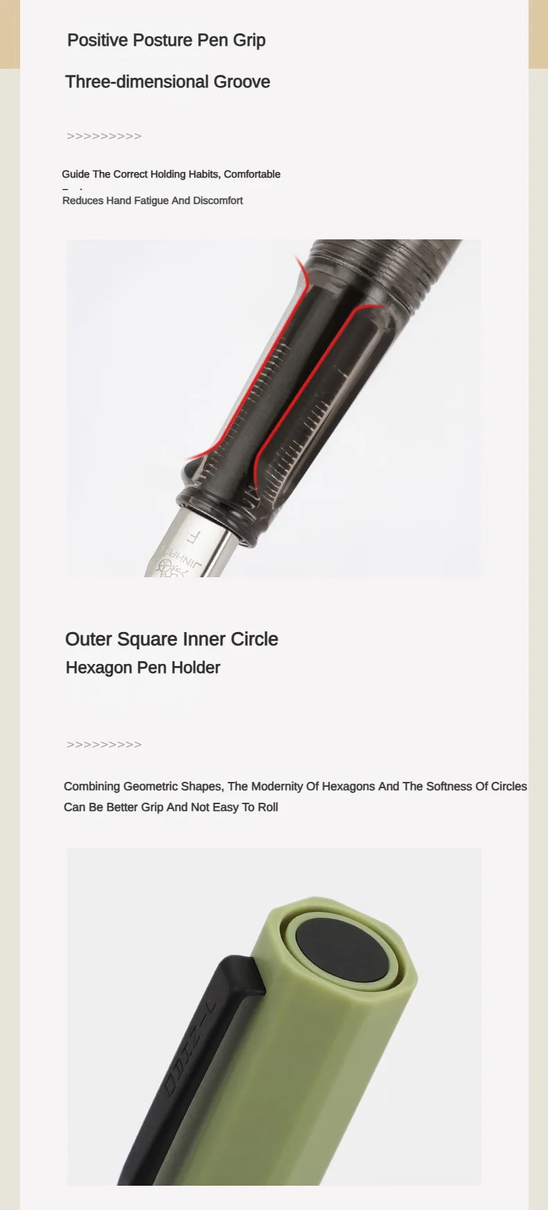Il fusto esagonale con angoli arrotondati fonde perfettamente la bellezza geometrica.La modernità della forma esagonale è completata dalla morbidezza dei bordi arrotondati, migliorando la presa e impedendo alla penna di rotolare dalle tavole.