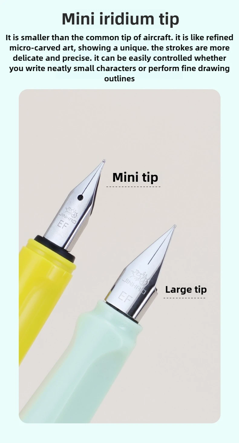 Non solo ha un aspetto eccezionale, ma si concentra anche sulla sensazione di scrittura.Con un peso di soli 9 grammi, il design ultraleggero ti assicura di non sentire la minima fatica anche dopo aver scritto a lungo.La punta MINI iridio fornisce tratti delicati e precisi.Che tu stia scrivendo piccoli personaggi ordinati o creando contorni di disegni raffinati, può gestirli con facilità, rendendolo una scelta eccellente per la pratica e la firma della calligrafia.