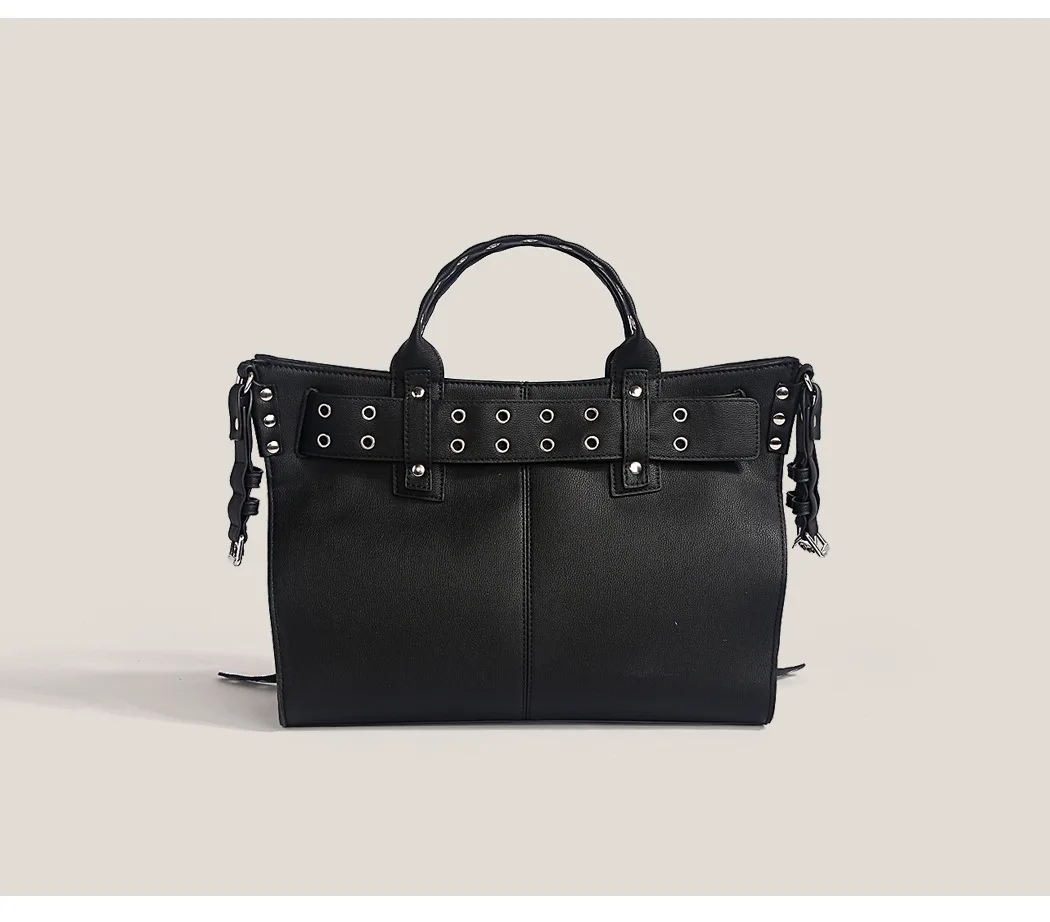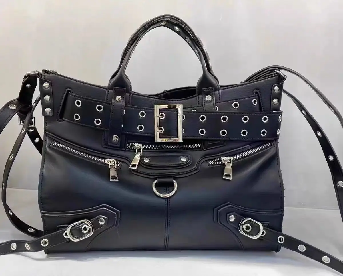JIOMAY Women Black Goth Bag 2024 Fashion Woman Ladies Moto and Biker Style borsa a tracolla Rivet Belt Tote Bag di grande capacità