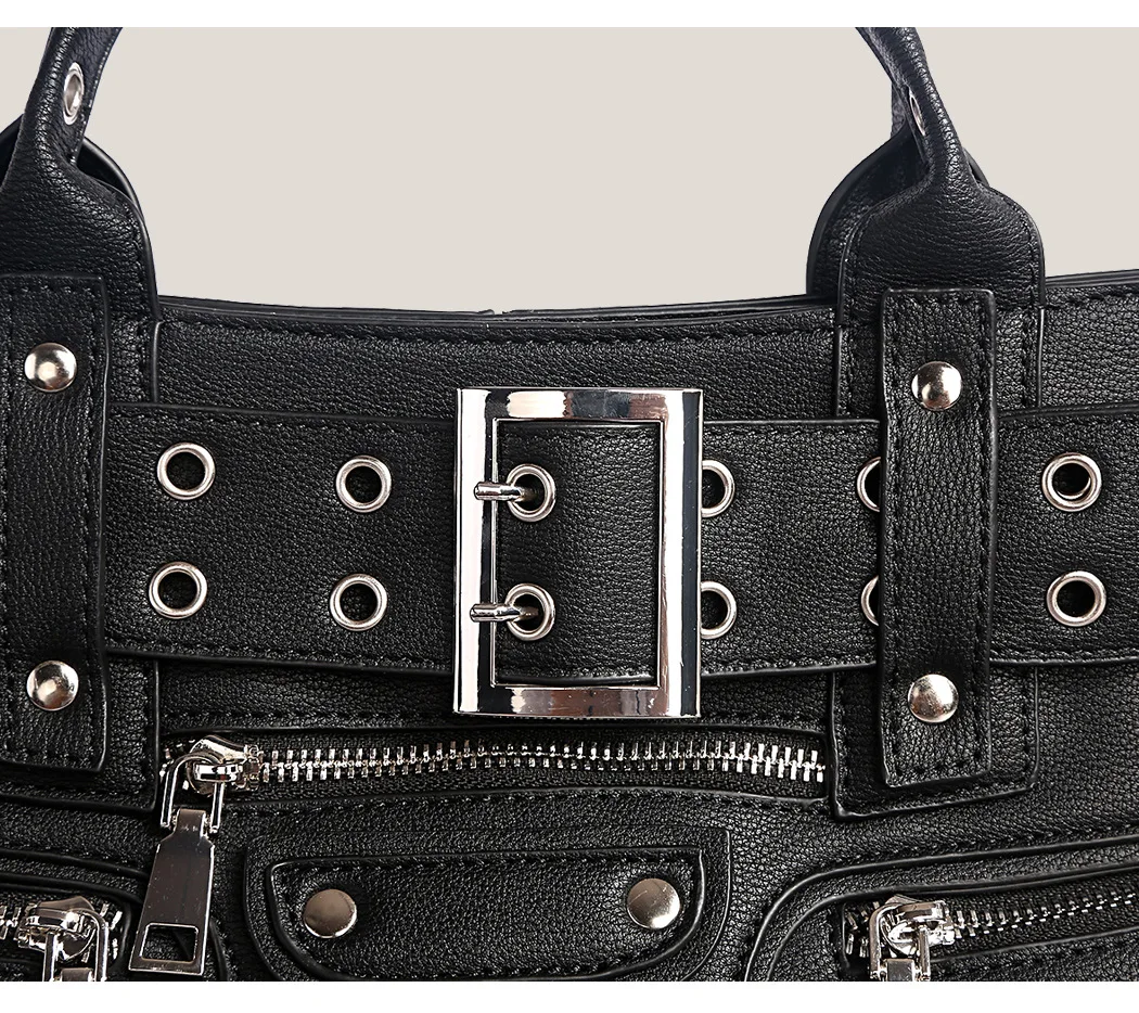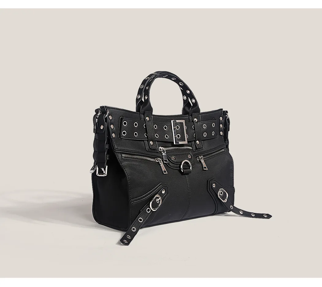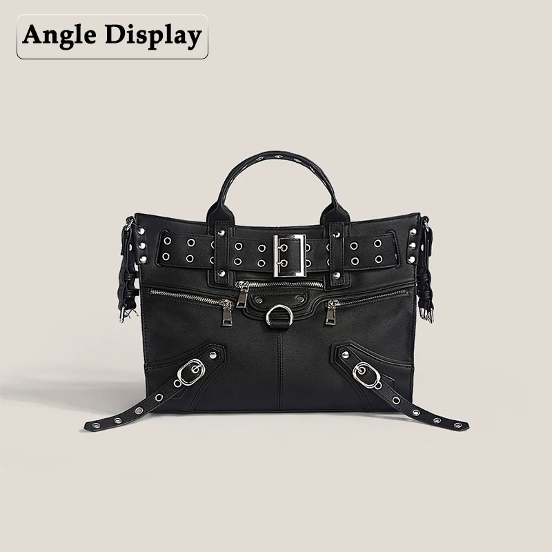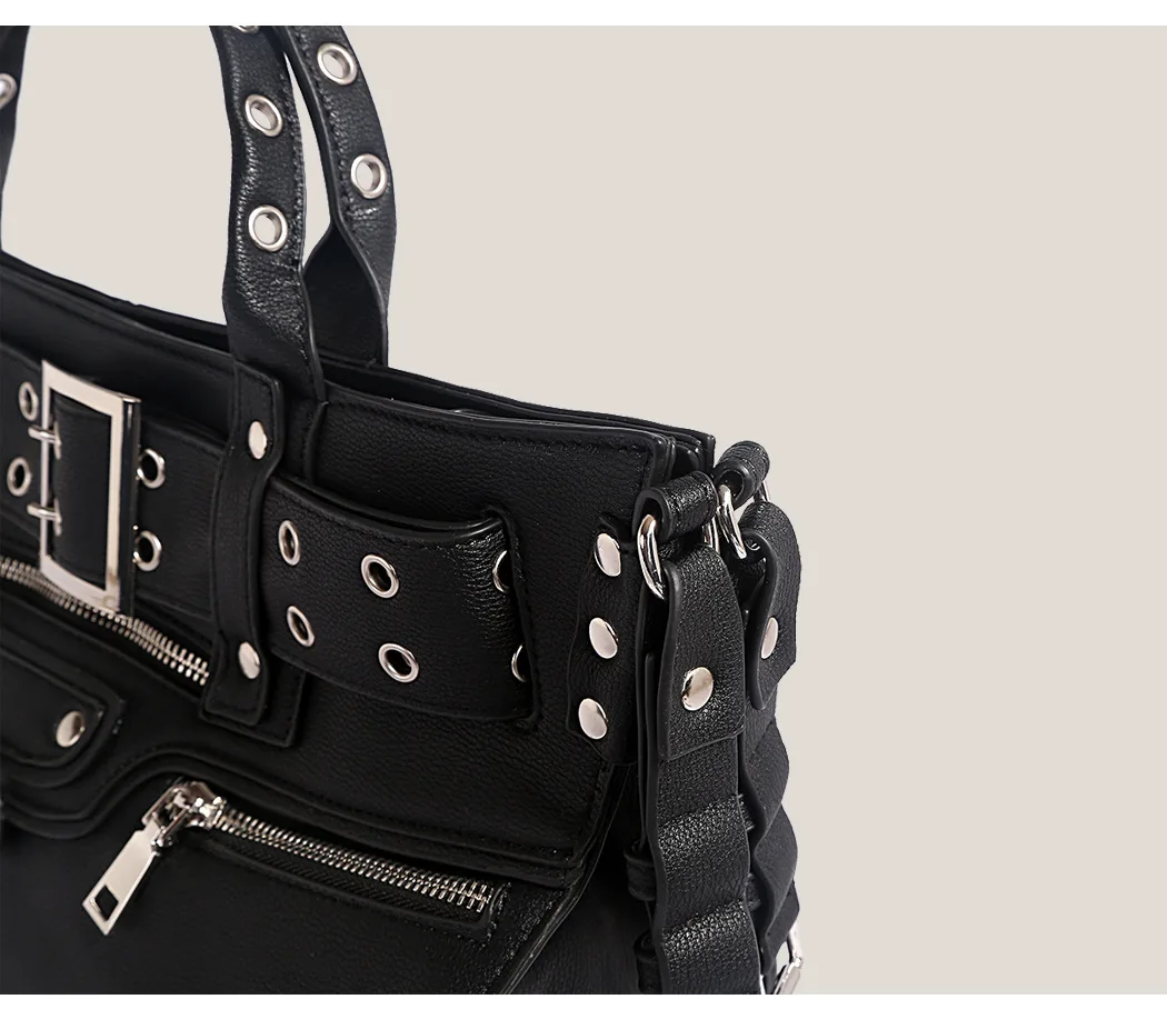 JIOMAY Women Black Goth Bag 2024 Fashion Woman Ladies Moto and Biker Style borsa a tracolla Rivet Belt Tote Bag di grande capacità 1JIOMAY Women Black Goth Bag 2024 Fashion Woman Ladies Moto and Biker Style borsa a tracolla Rivet Belt Tote Bag di grande capacità