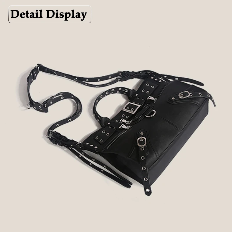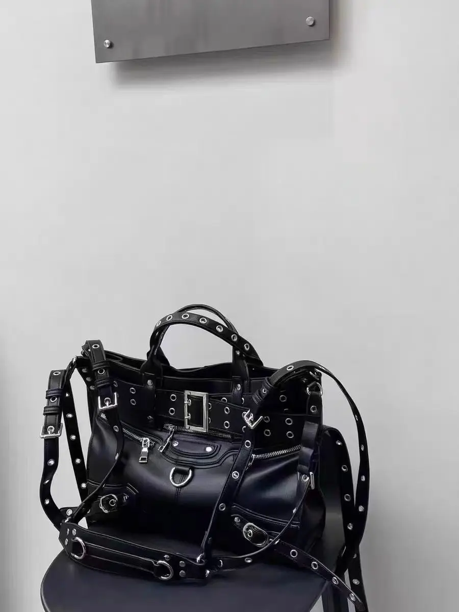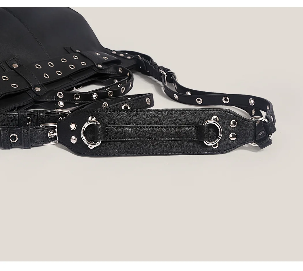 JIOMAY Women Black Goth Bag 2024 Fashion Woman Ladies Moto and Biker Style borsa a tracolla Rivet Belt Tote Bag di grande capacità 1JIOMAY Women Black Goth Bag 2024 Fashion Woman Ladies Moto and Biker Style borsa a tracolla Rivet Belt Tote Bag di grande capacità