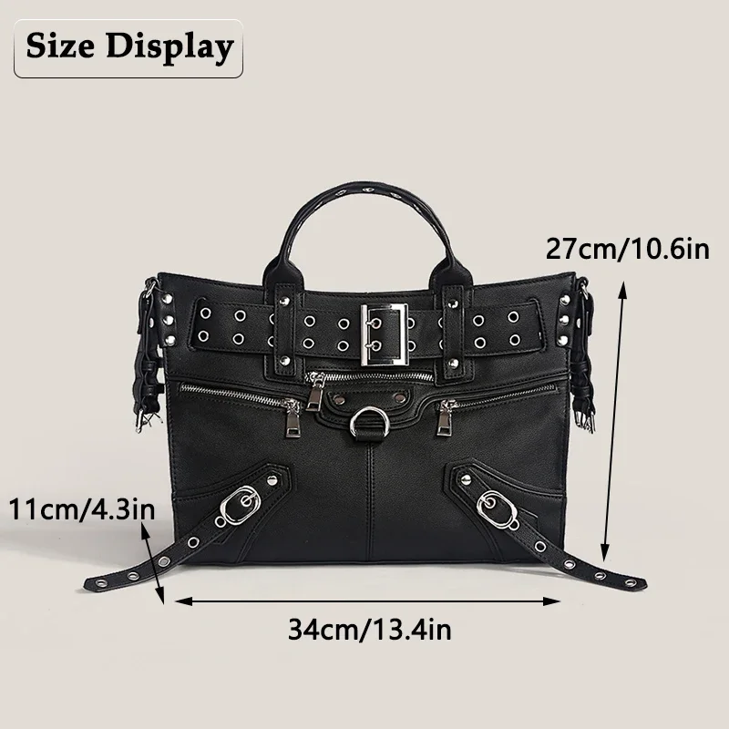 JIOMAY Women Black Goth Bag 2024 Fashion Woman Ladies Moto and Biker Style borsa a tracolla Rivet Belt Tote Bag di grande capacità 1JIOMAY Women Black Goth Bag 2024 Fashion Woman Ladies Moto and Biker Style borsa a tracolla Rivet Belt Tote Bag di grande capacità
