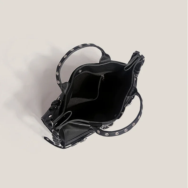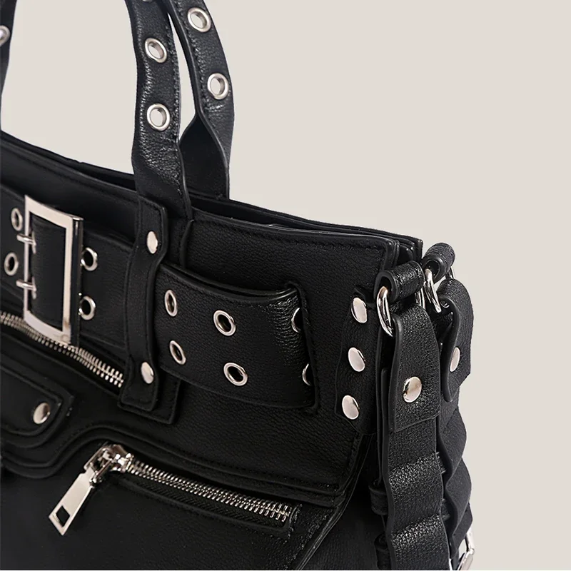 JIOMAY Women Black Goth Bag 2024 Fashion Woman Ladies Moto and Biker Style borsa a tracolla Rivet Belt Tote Bag di grande capacità