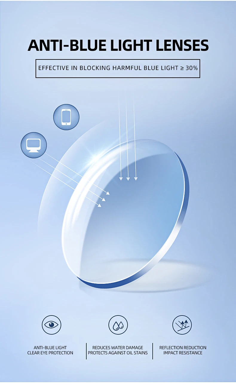 5 Anti raggi blu: le lenti hanno funzioni anti luce blu e antiriflesso, che sono i nostri occhiali da vista più comunemente usati