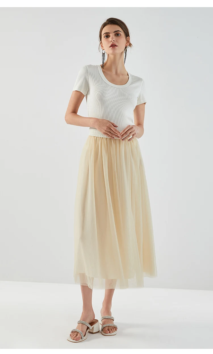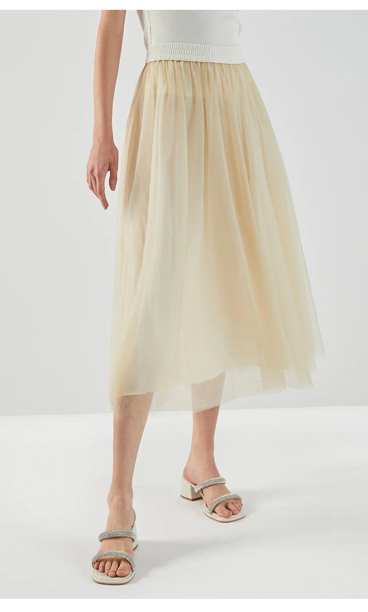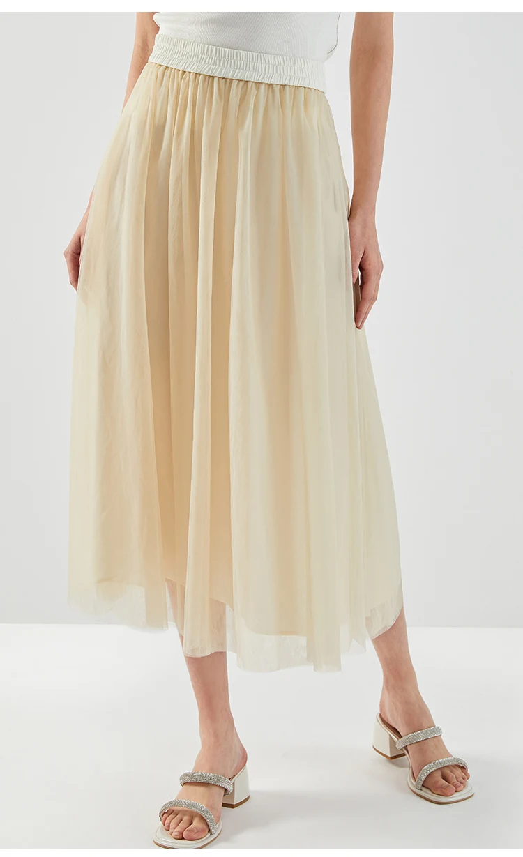 K1290W abbigliamento di alta qualità a vita alta gonne a pieghe Midi gonne lunghe da donna per gonna in Tulle da donna