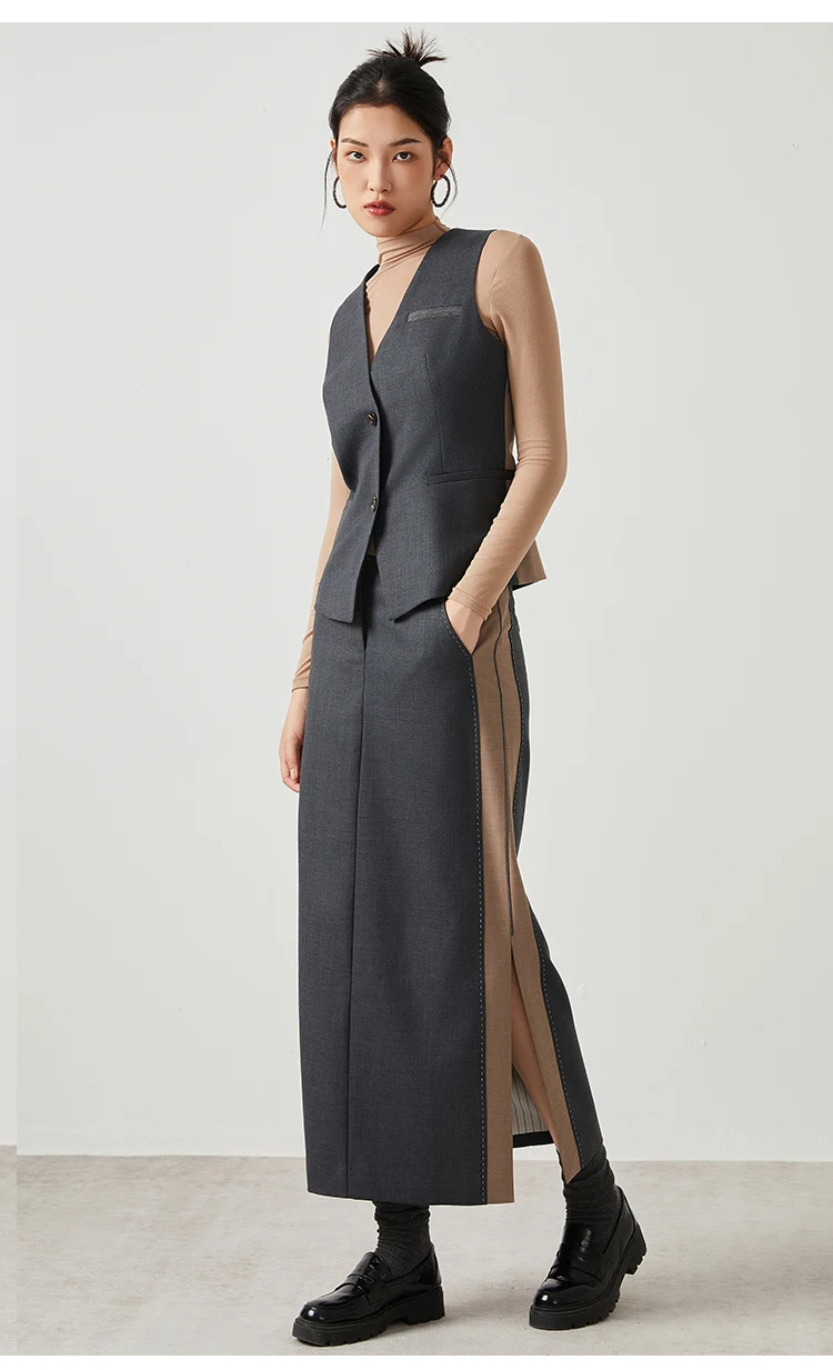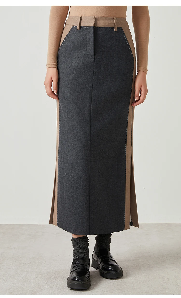 K2549W Gonna di lana formale da ufficio di alta qualità da donna di lusso Gonne lunghe di lana australiana per signora