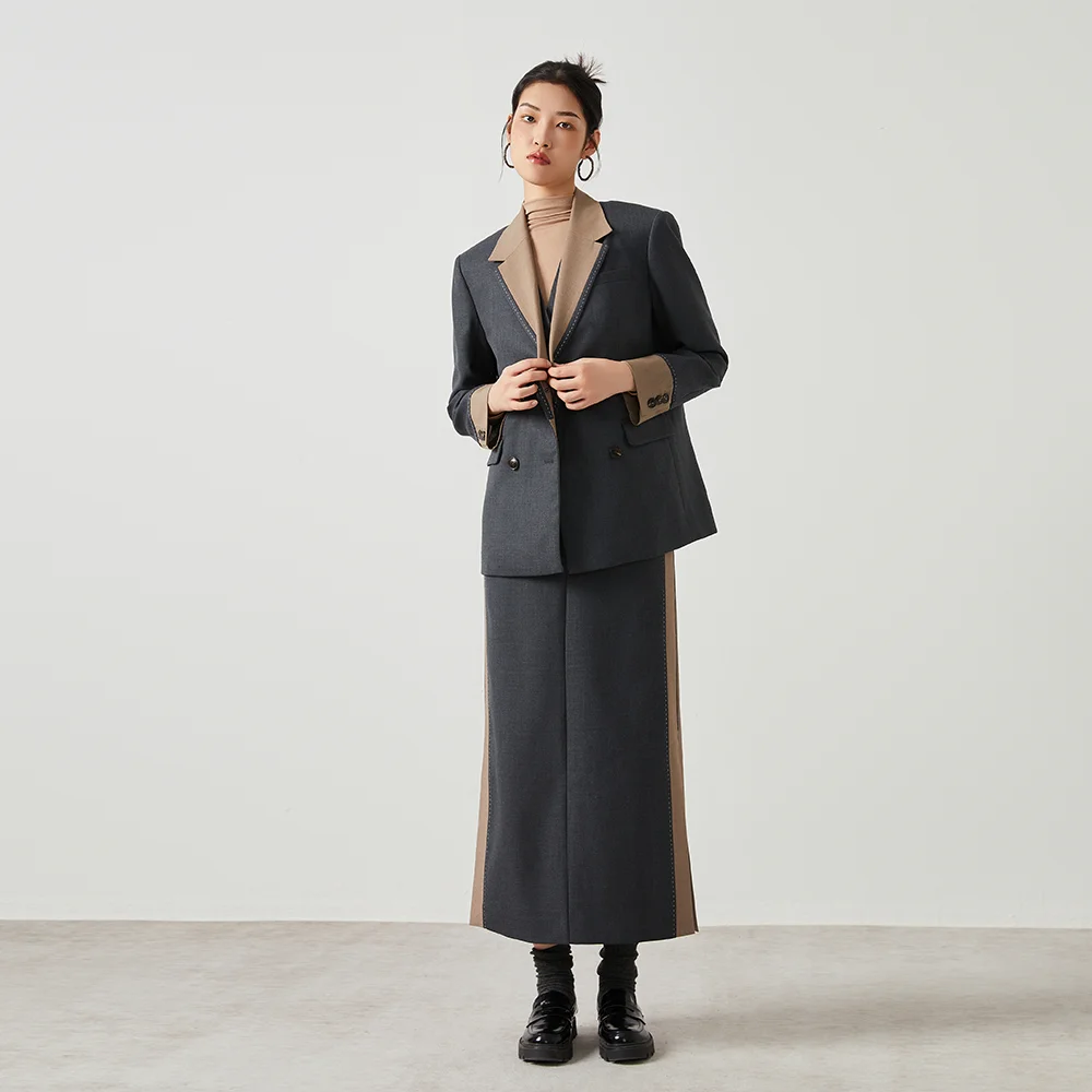 Abbigliamento da donna autunno inverno Nuovo articolo Tinta unita Moda monopetto Top corto Abito slim fit Set da due pezzi