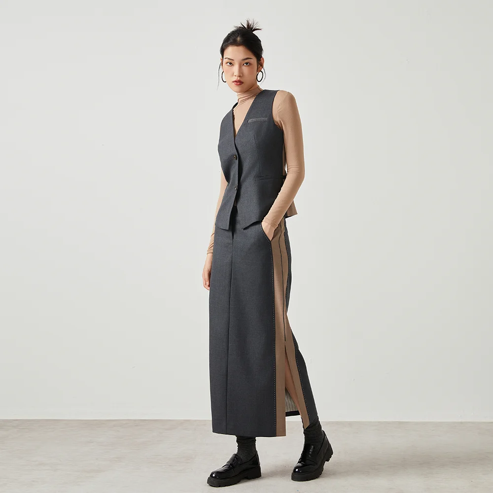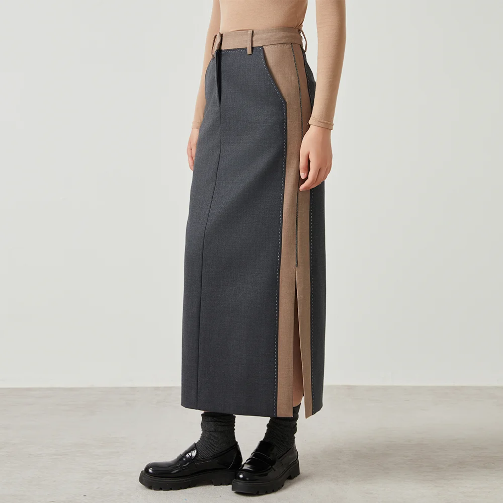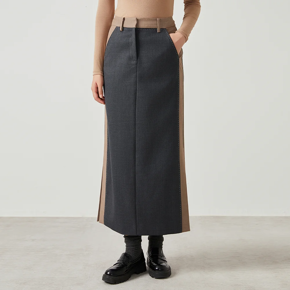K2549W Gonna di lana formale da ufficio di alta qualità da donna di lusso Gonne lunghe di lana australiana per signora