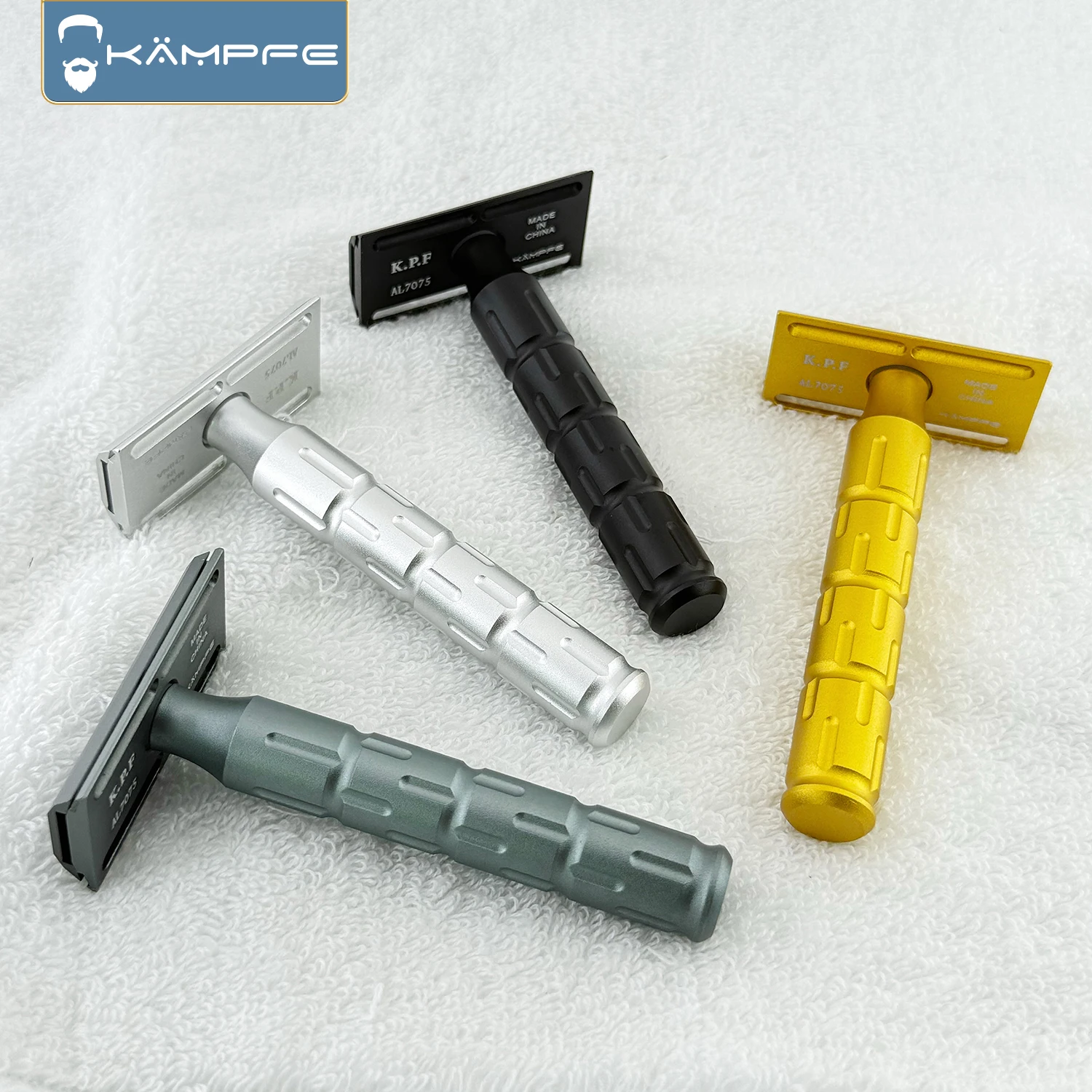 I rasoi di sicurezza KAMPFE sono prodotti in massa utilizzando la lavorazione CNC. I diversi processi di trattamento superficiale possono resultare in alcune segni di lavorazione rimanenti sul rasoio, che sono normali segni di lavorazione. Se la mente, per favore non acquistare!