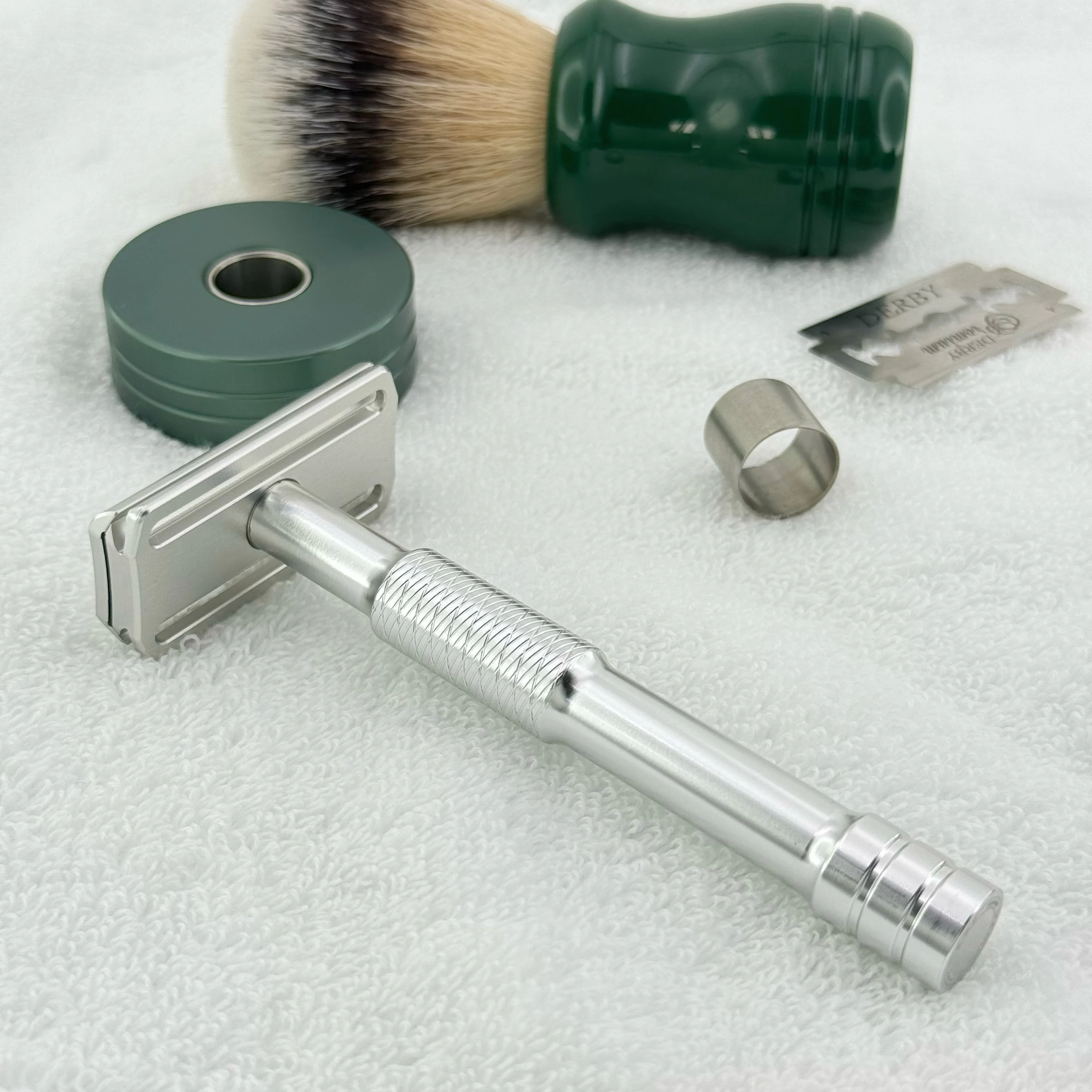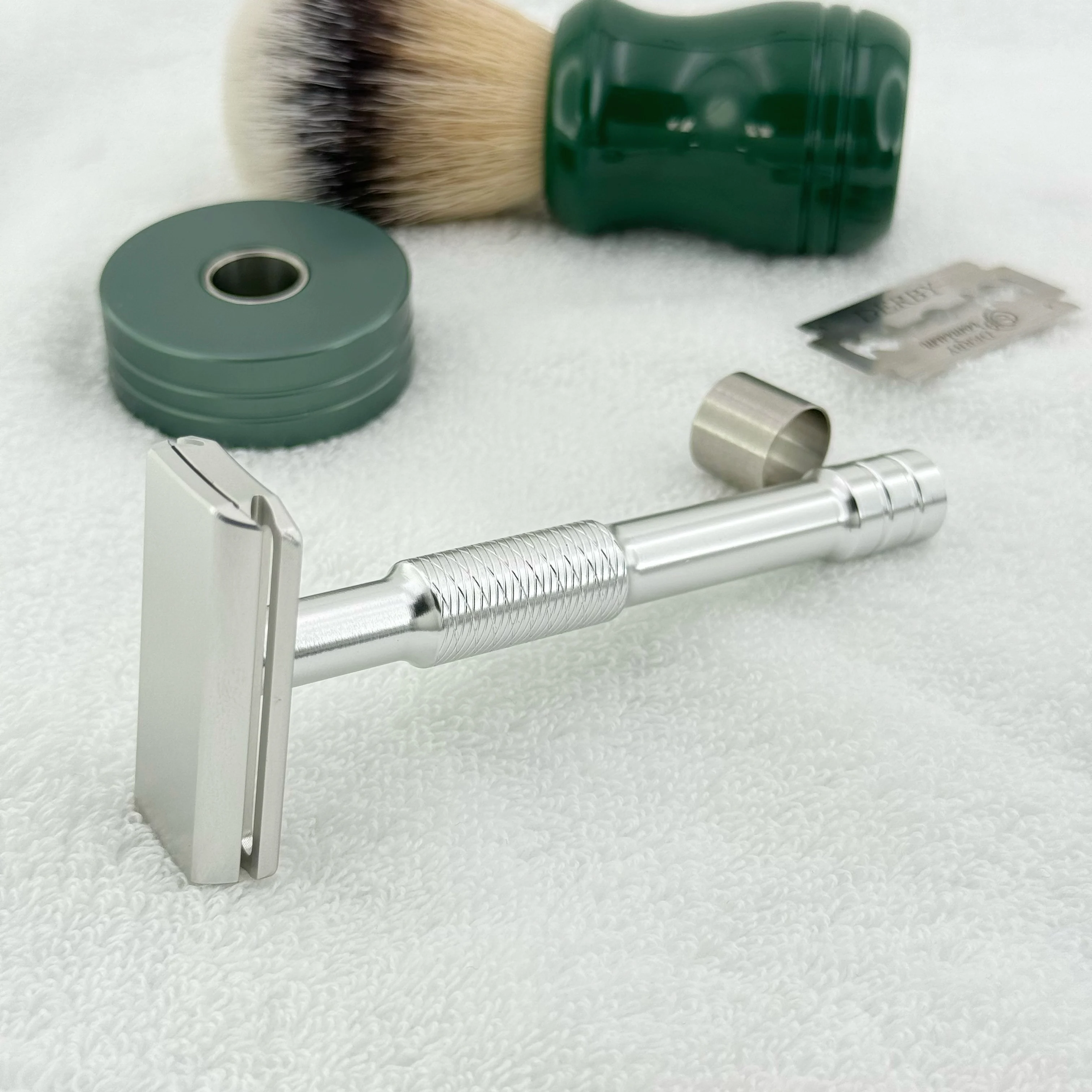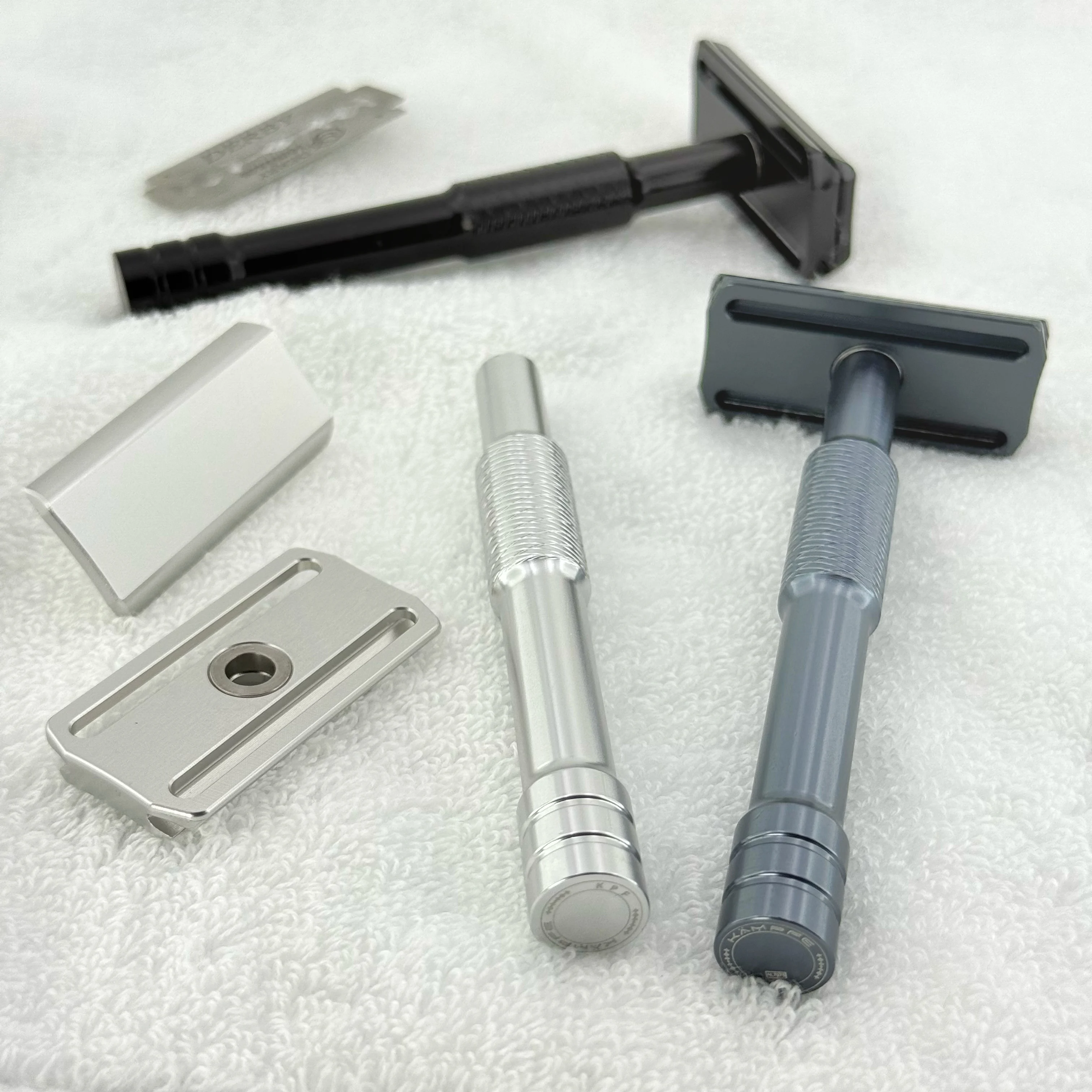 I rasoi di sicurezza KAMPFE sono prodotti in massa utilizzando la lavorazione CNC.I diversi processi di trattamento superficiale possono resultare in alcune segni di lavorazione rimanenti sul rasoio, che sono normali segni di lavorazione.