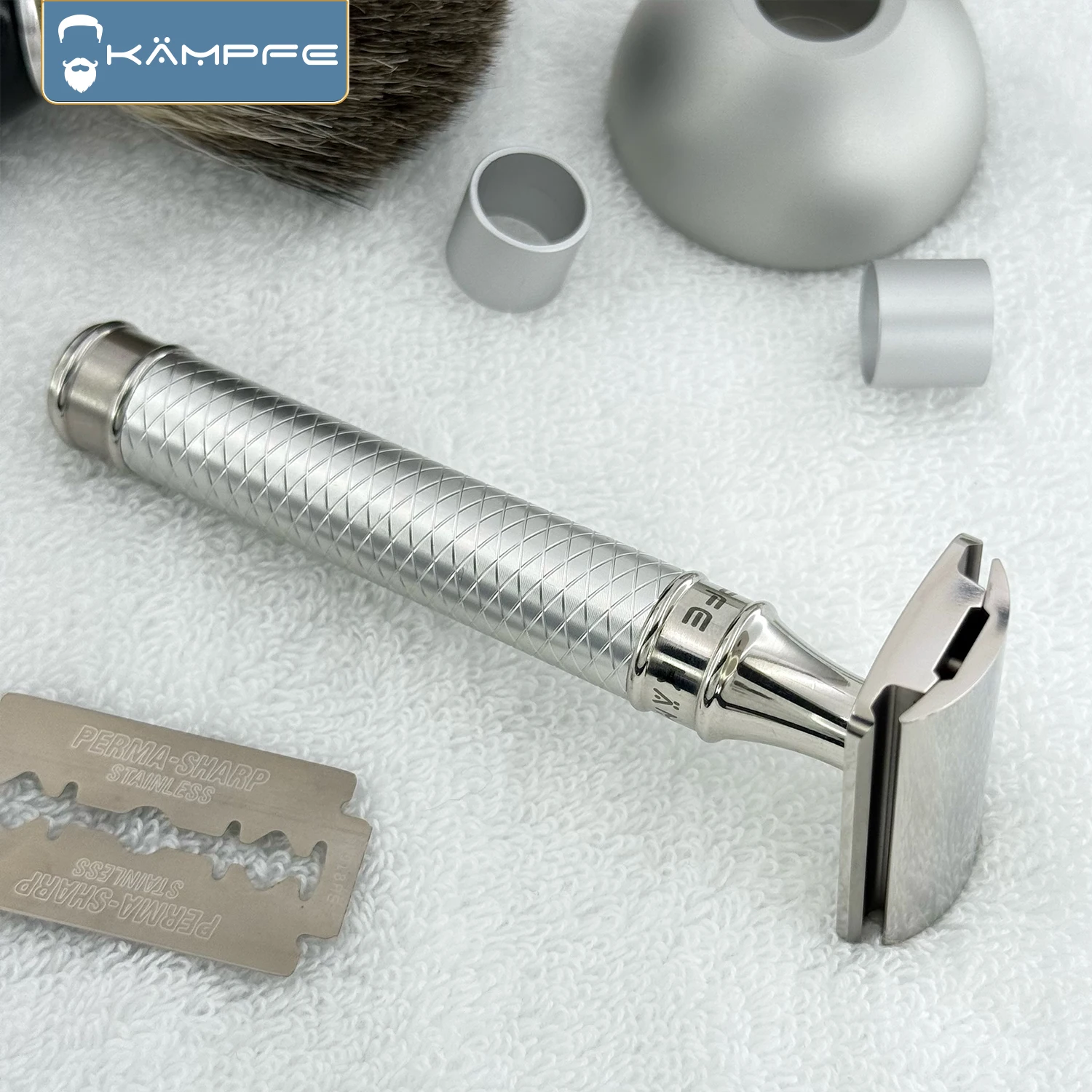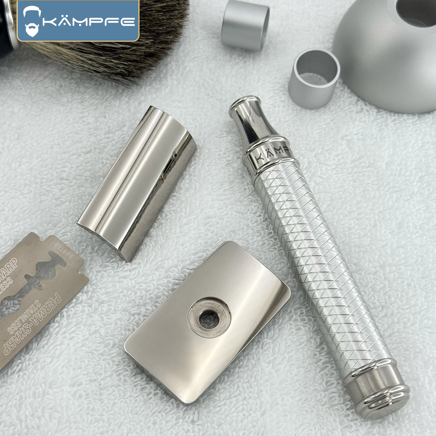 I rasoi di sicurezza KAMPFE sono prodotti in massa utilizzando la lavorazione CNC. I diversi processi di trattamento superficiale possono resultare in alcune segni di lavorazione rimanenti sul rasoio, che sono normali segni di lavorazione. Se la mente, per favore non acquistare!