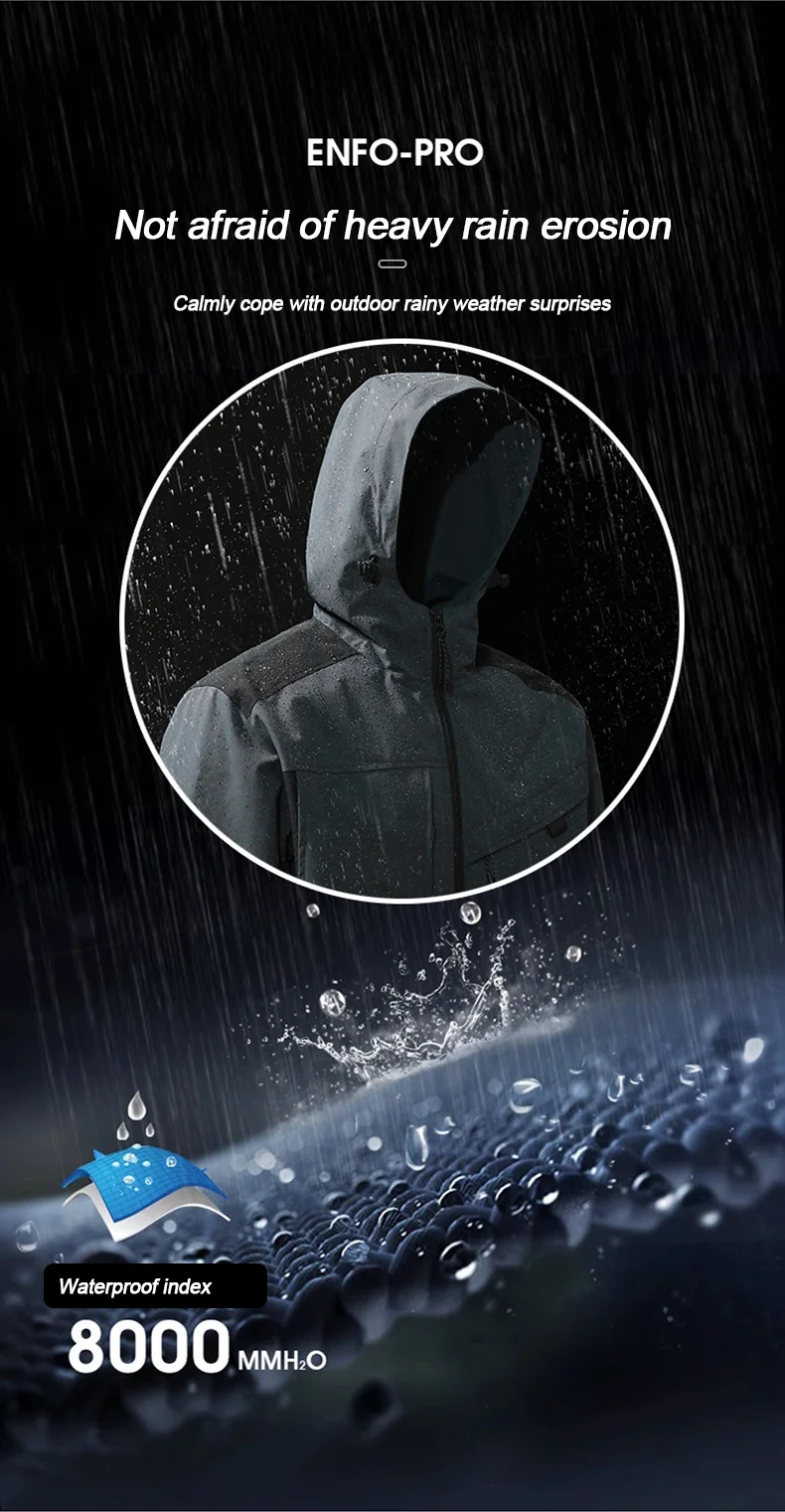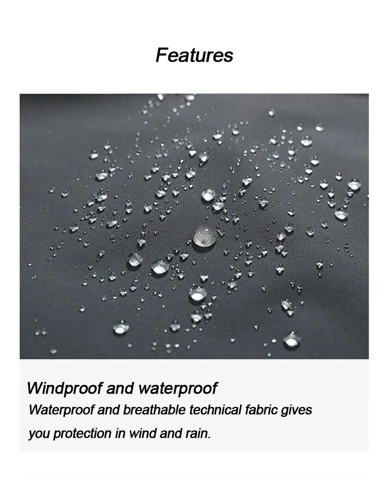 Il tessuto tecnico impermeabile e traspirante ti offre protezione nel vento e nella pioggia.