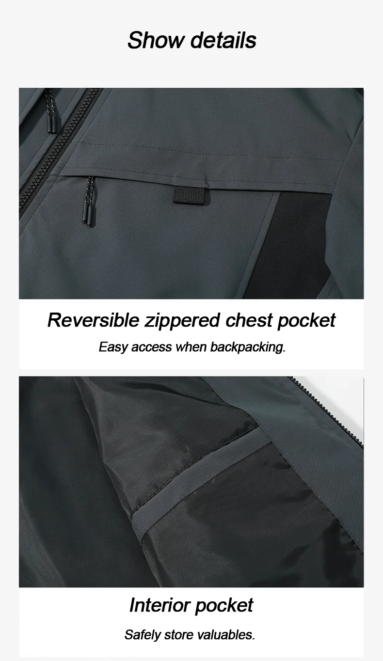 Tasca toracica reversibile con cerniera: facile accesso durante lo zaino in spalla.